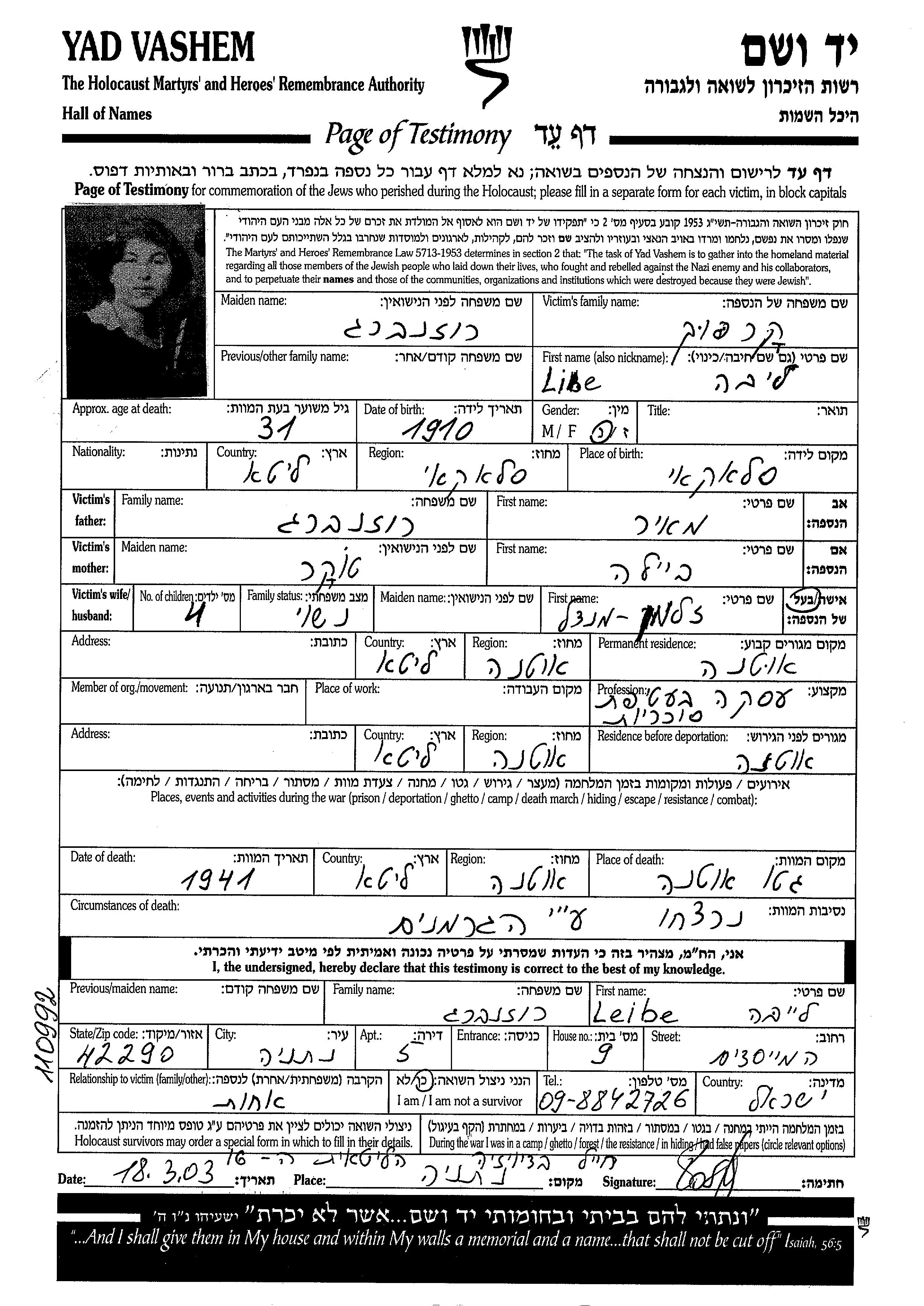 יד ושם - המפעל להנצחת השמות בדפי עד