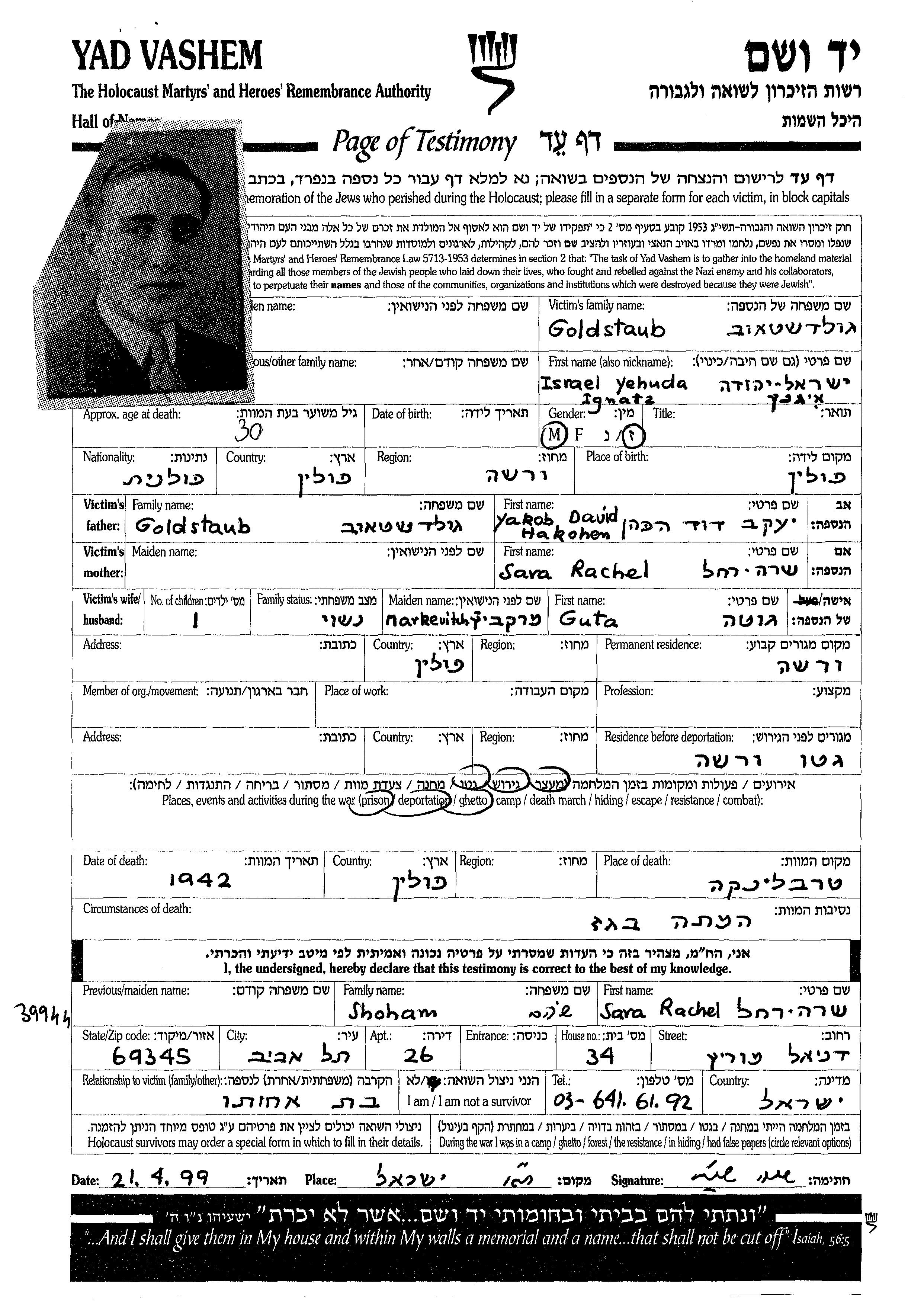 יד ושם - המפעל להנצחת השמות בדפי עד