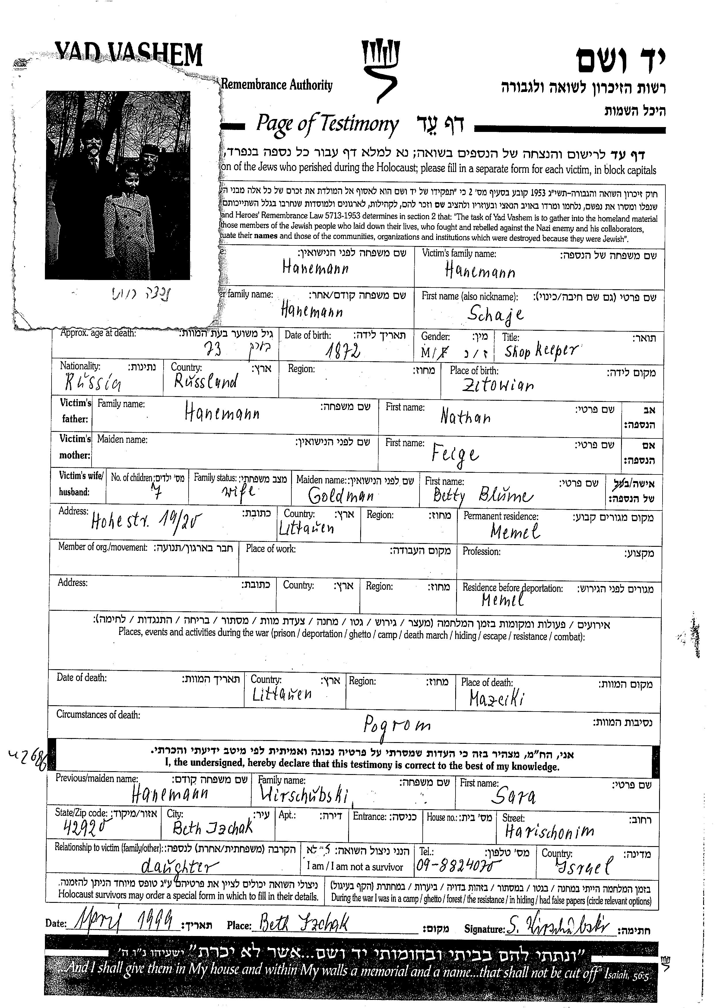 חיפוש שם מוסר דף העד. חיפוש לפי שם משפחה; כולל גם תוצאות חיפוש לפי שם הנעורים של אישה לפני הנישואין