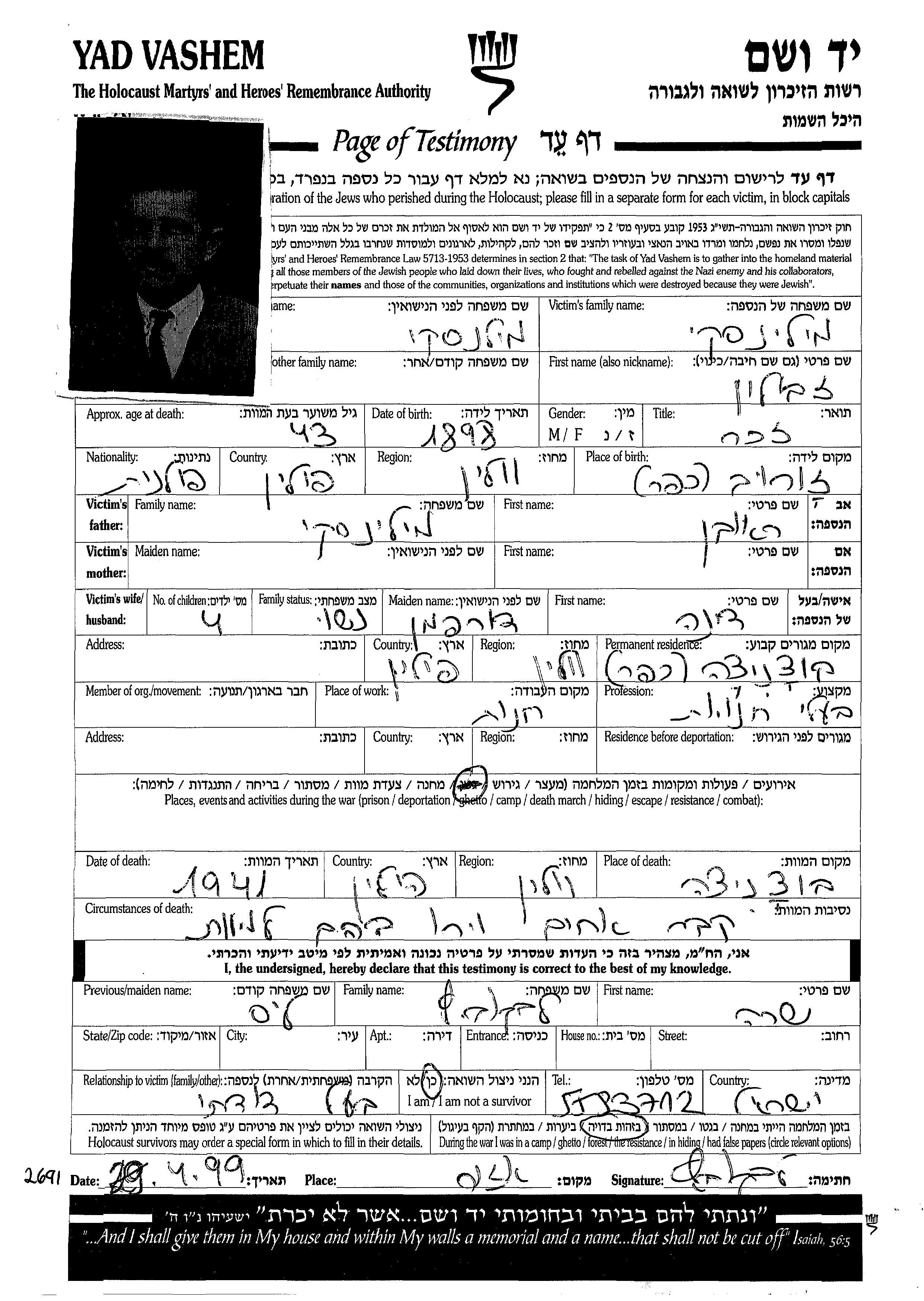 חיפוש שם מוסר דף העד. חיפוש לפי כל שם פרטי, כולל כינוי או שם חיבה