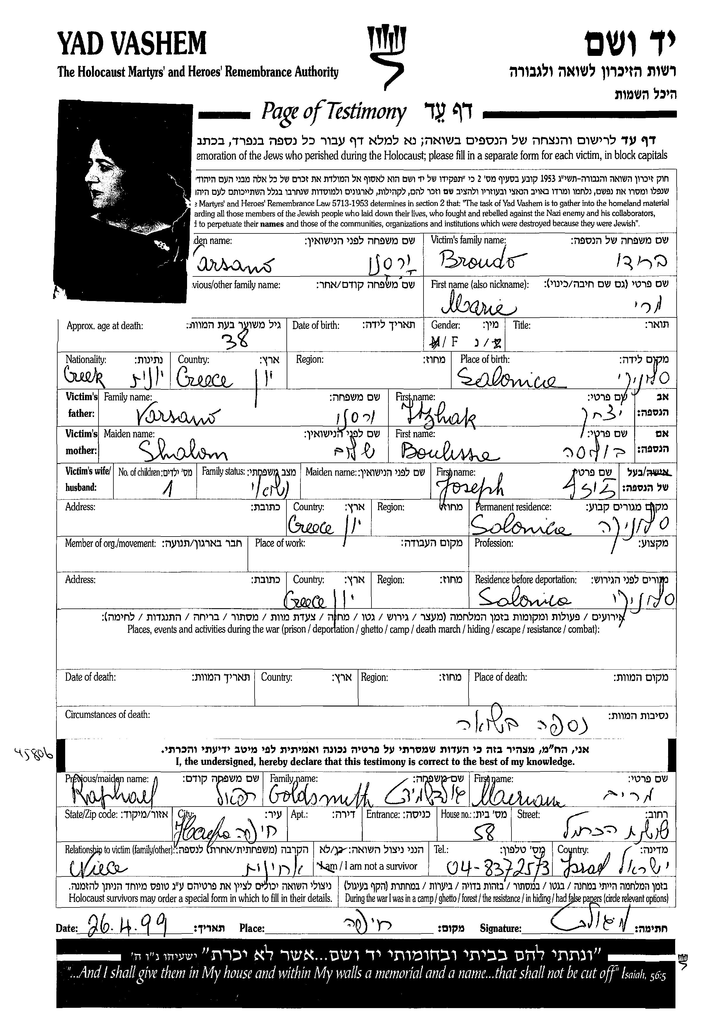 יד ושם - המפעל להנצחת השמות בדפי עד