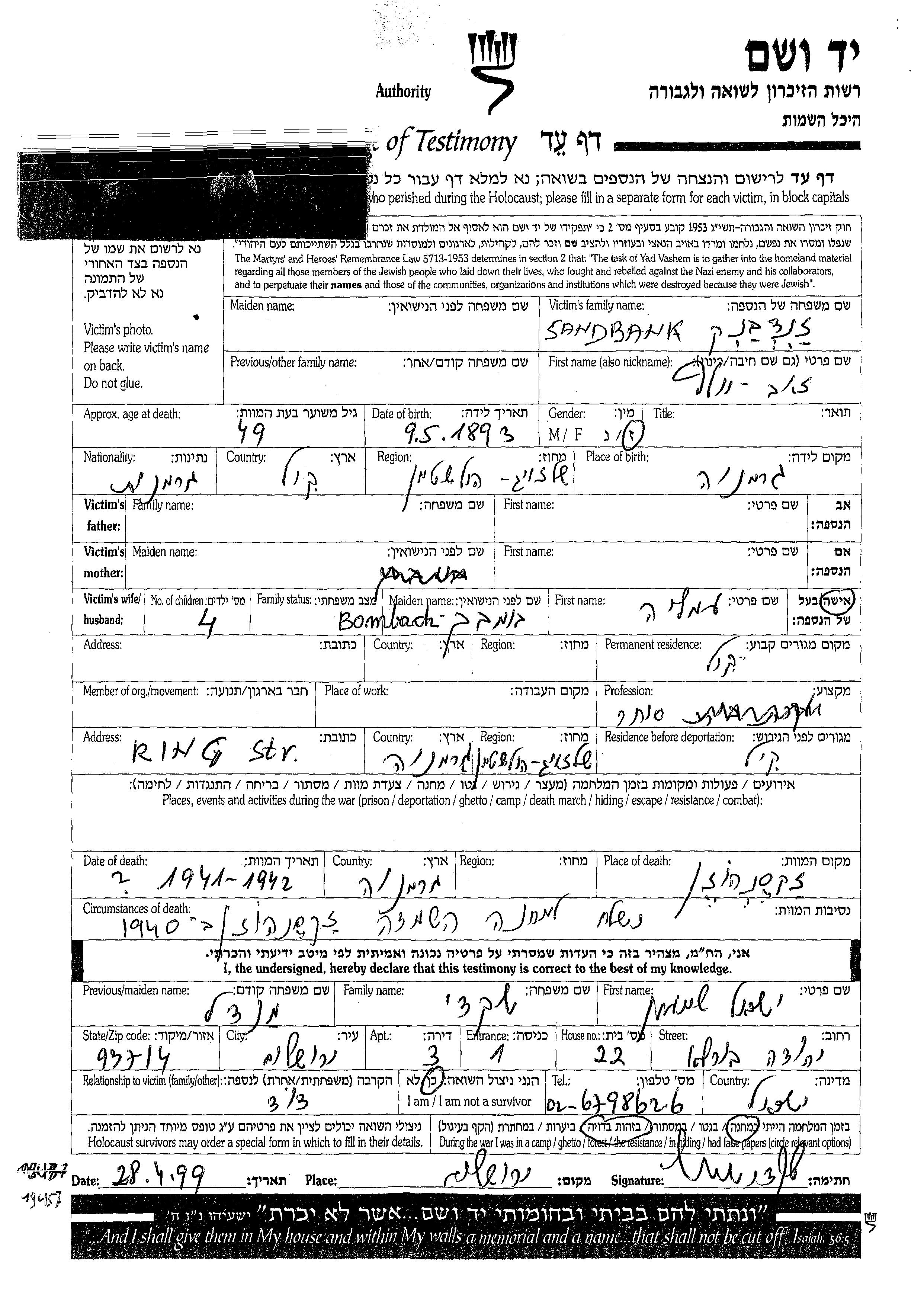 יד ושם - המפעל להנצחת השמות בדפי עד