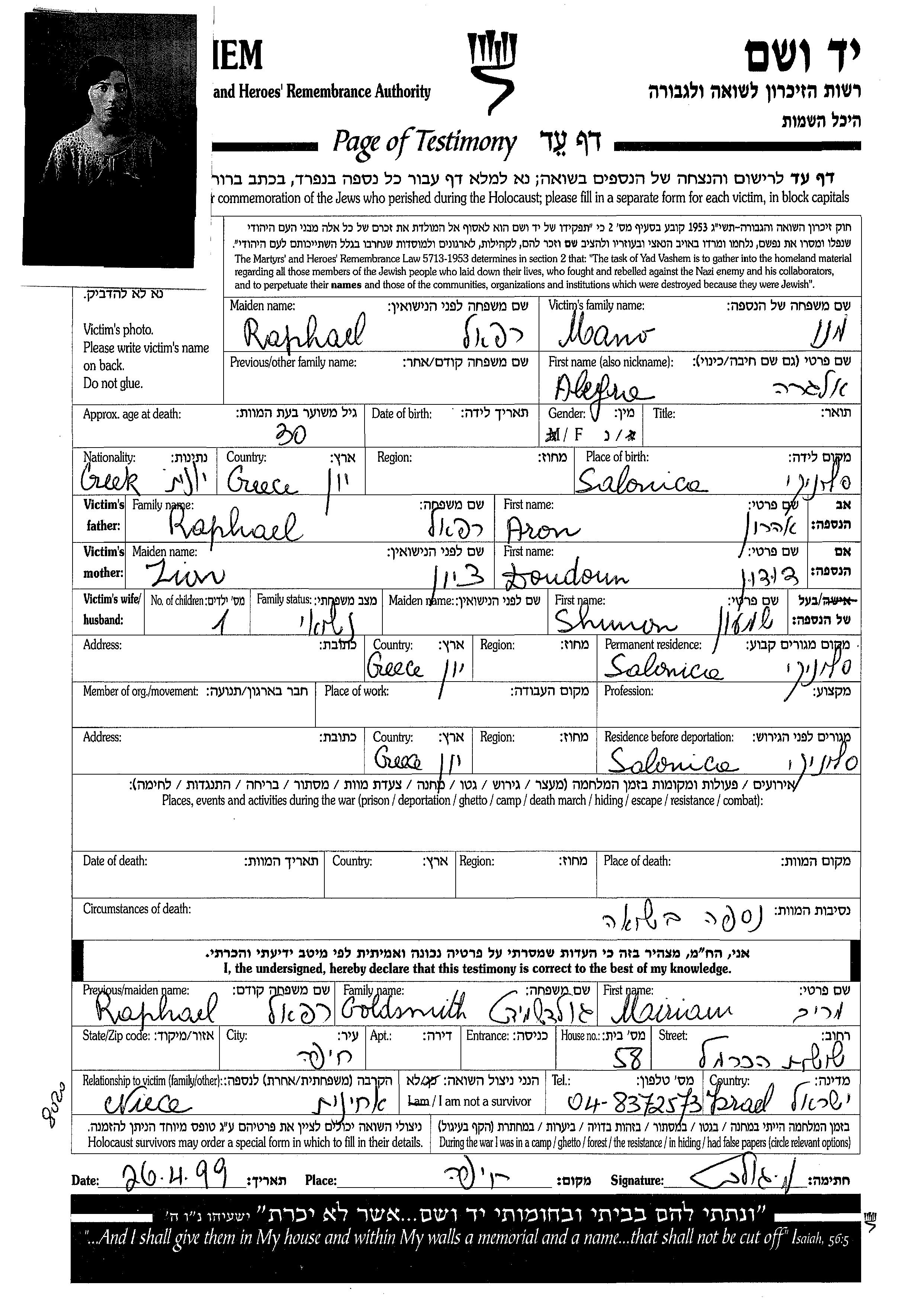 Alegre מנו לבית רפאל נולדה בThessaloniki שביון. לפני מלחמת העולם השניה התגוררה בThessaloniki שביון.