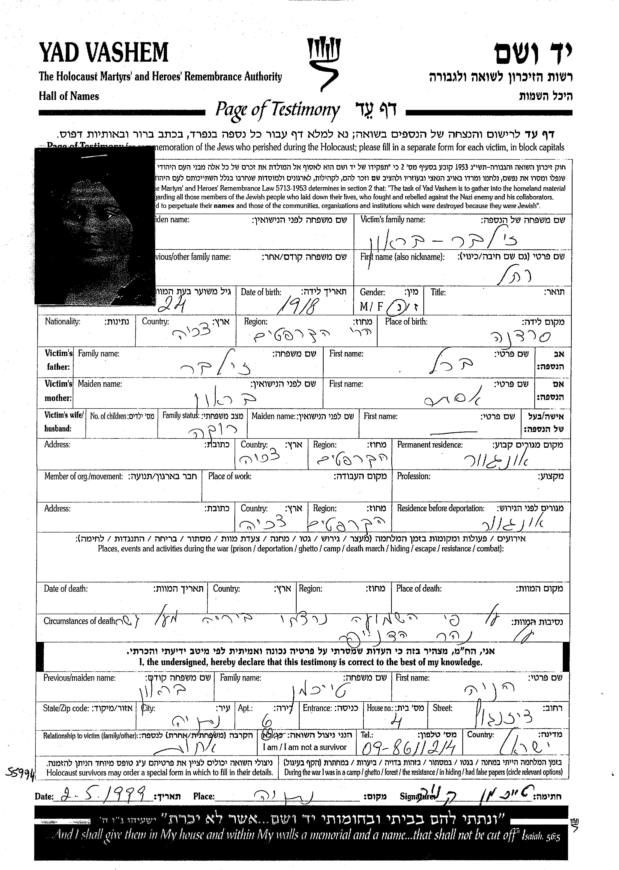 יד ושם - המפעל להנצחת השמות בדפי עד