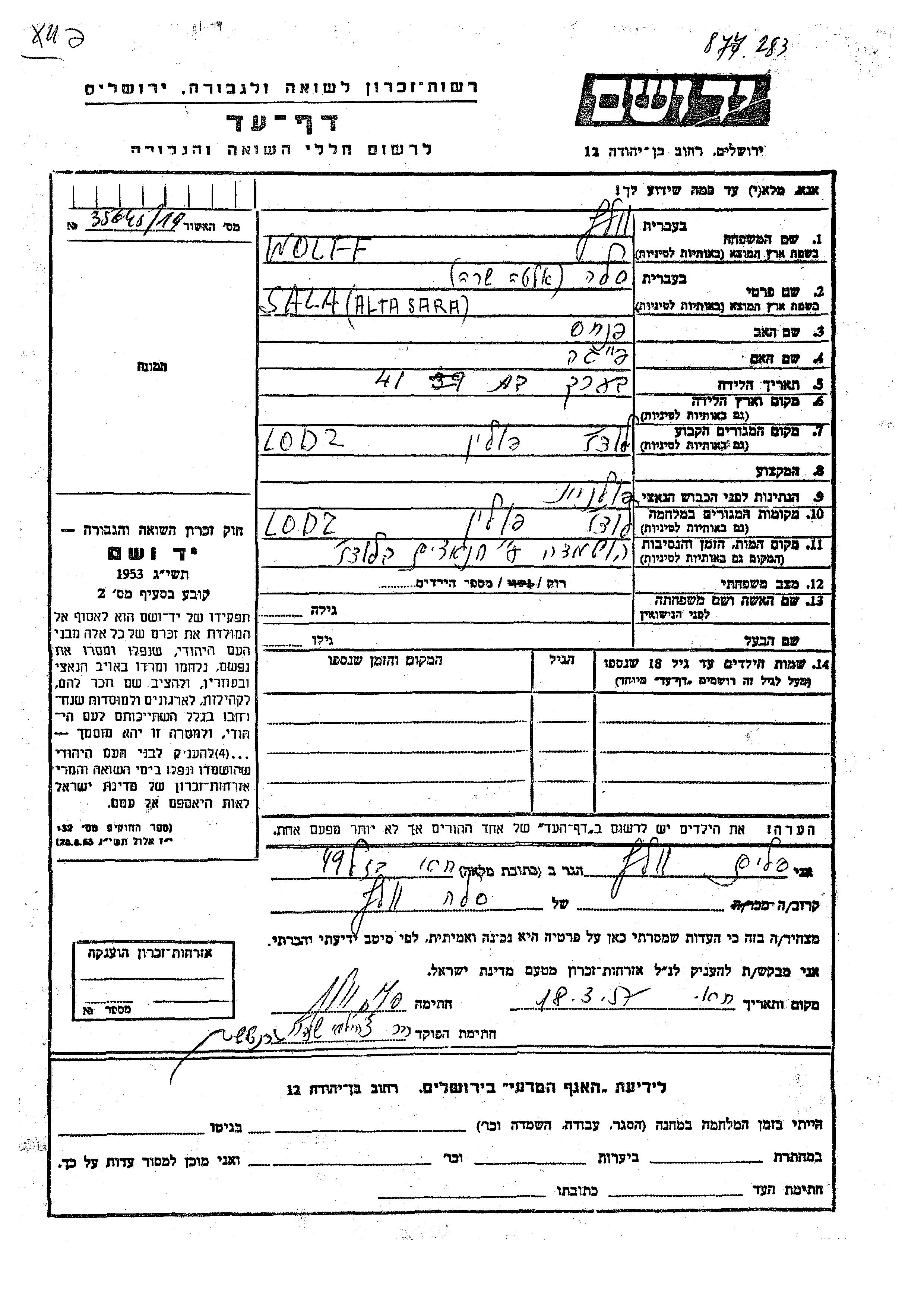 יד ושם - המפעל להנצחת השמות בדפי עד
