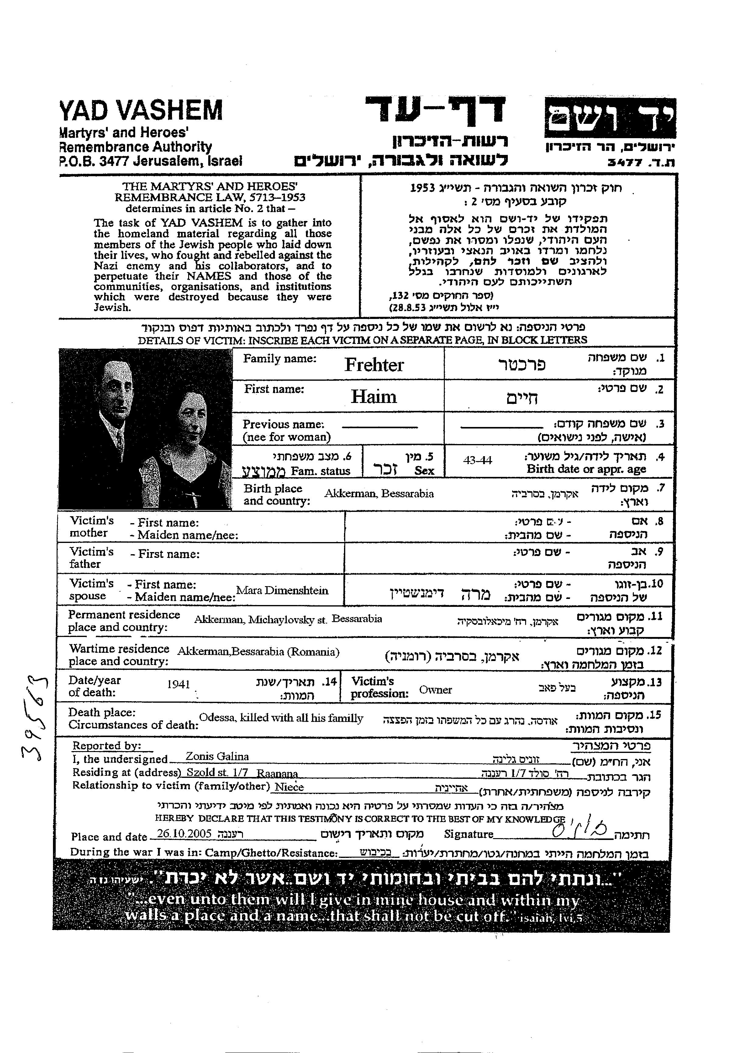 יד ושם - המפעל להנצחת השמות בדפי עד