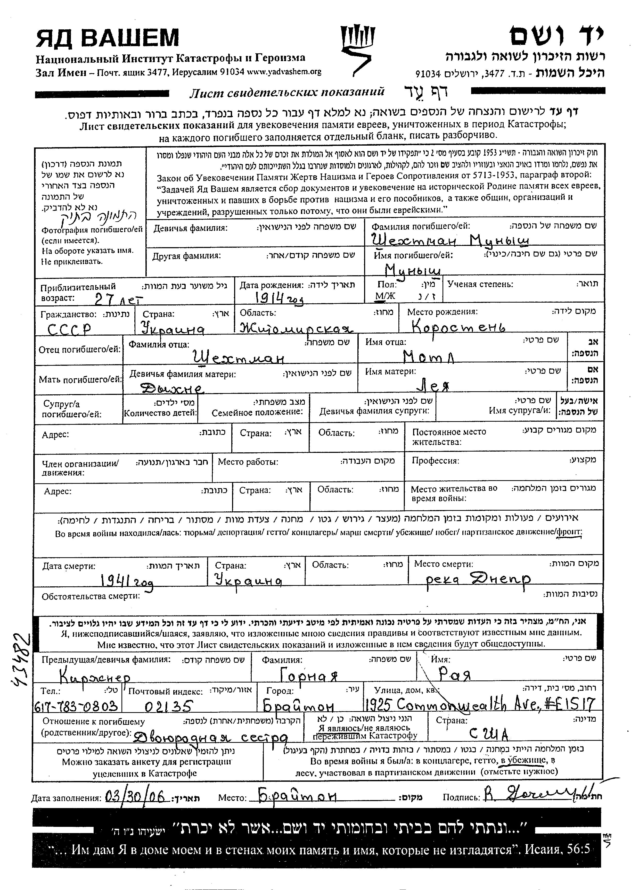 חיפוש שם מוסר דף העד. חיפוש לפי כל שם פרטי, כולל כינוי או שם חיבה