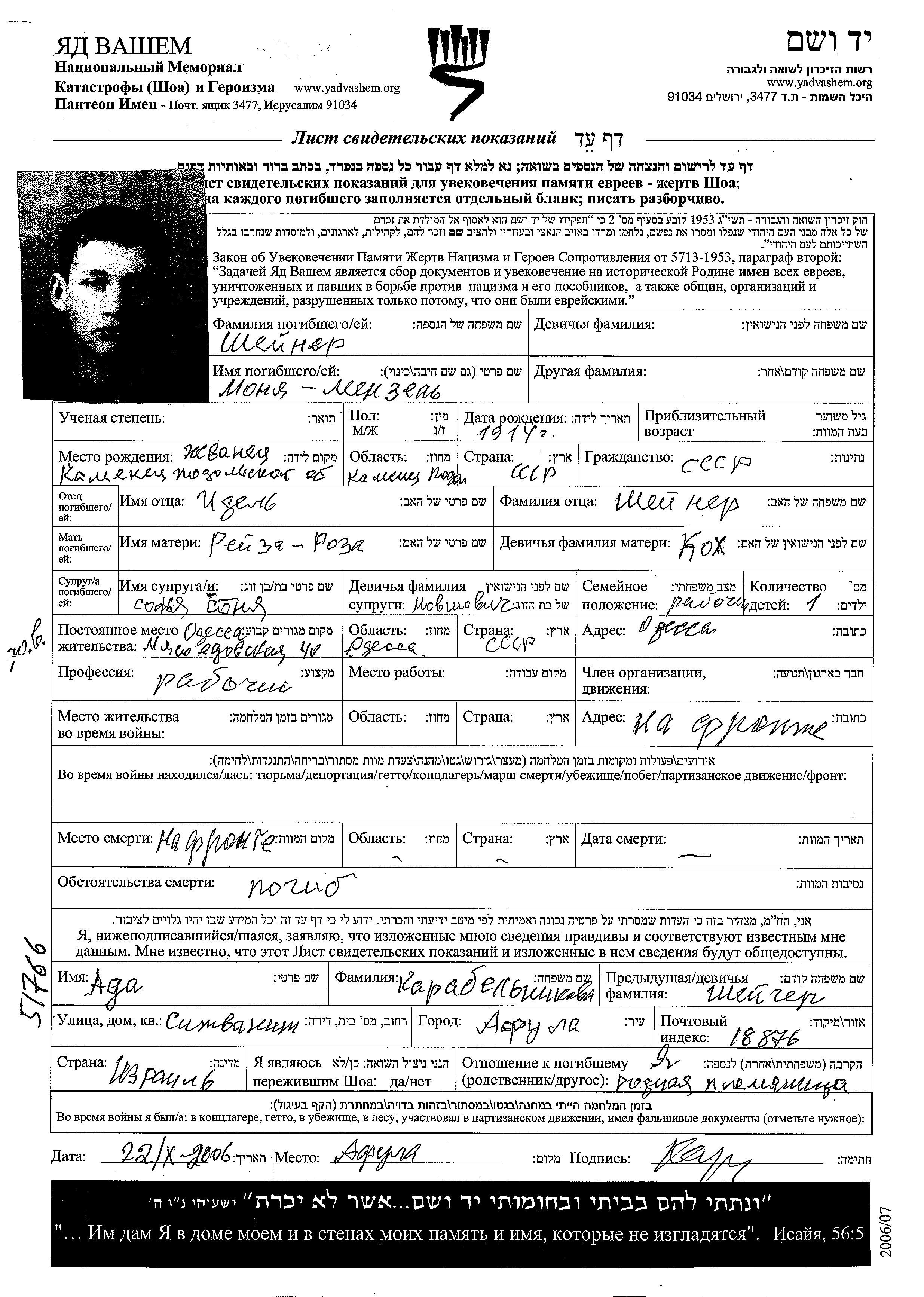 יד ושם - המפעל להנצחת השמות בדפי עד