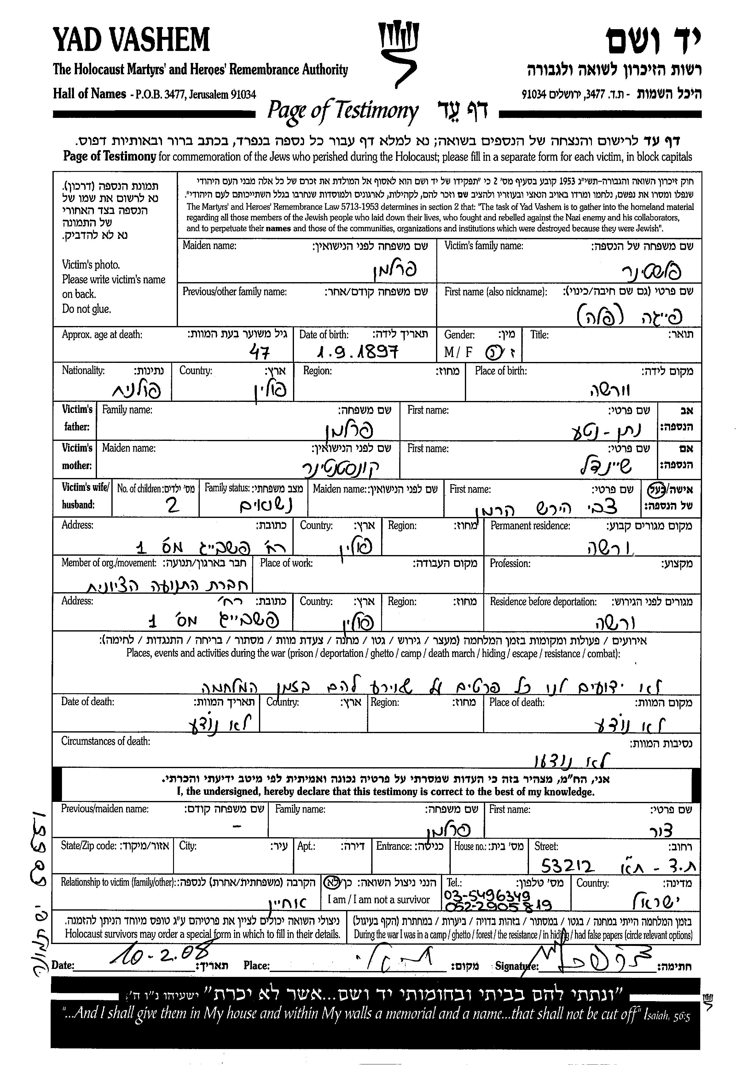 חיפוש שם מוסר דף העד. חיפוש לפי כל שם פרטי, כולל כינוי או שם חיבה