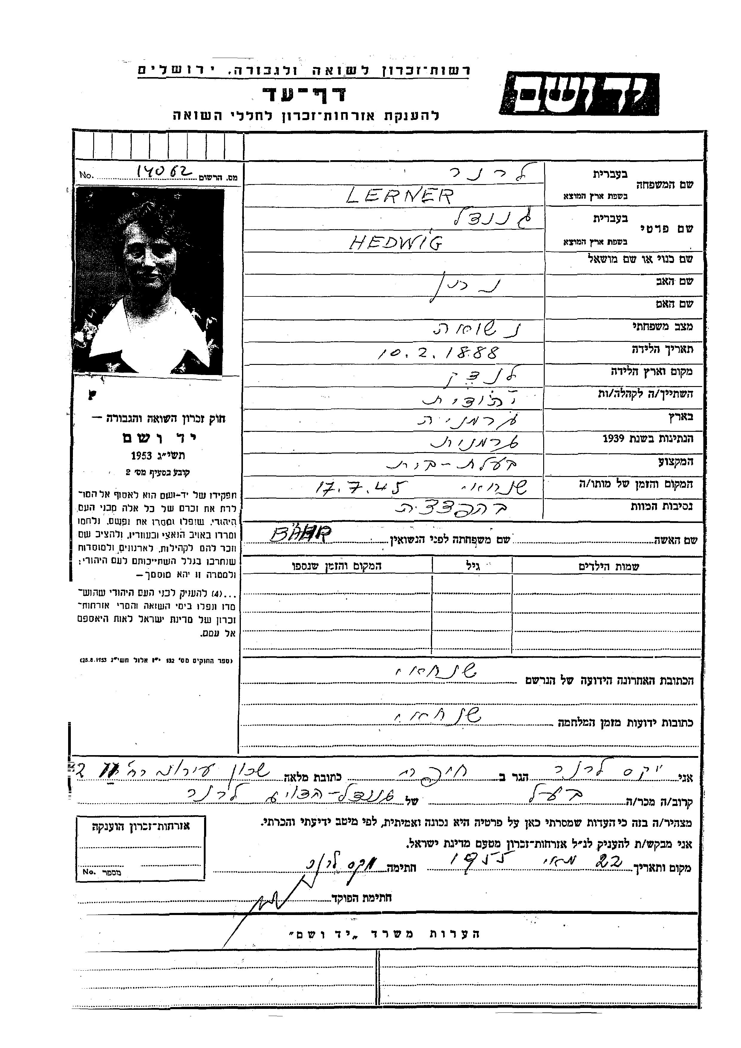 יד ושם - המפעל להנצחת השמות בדפי עד