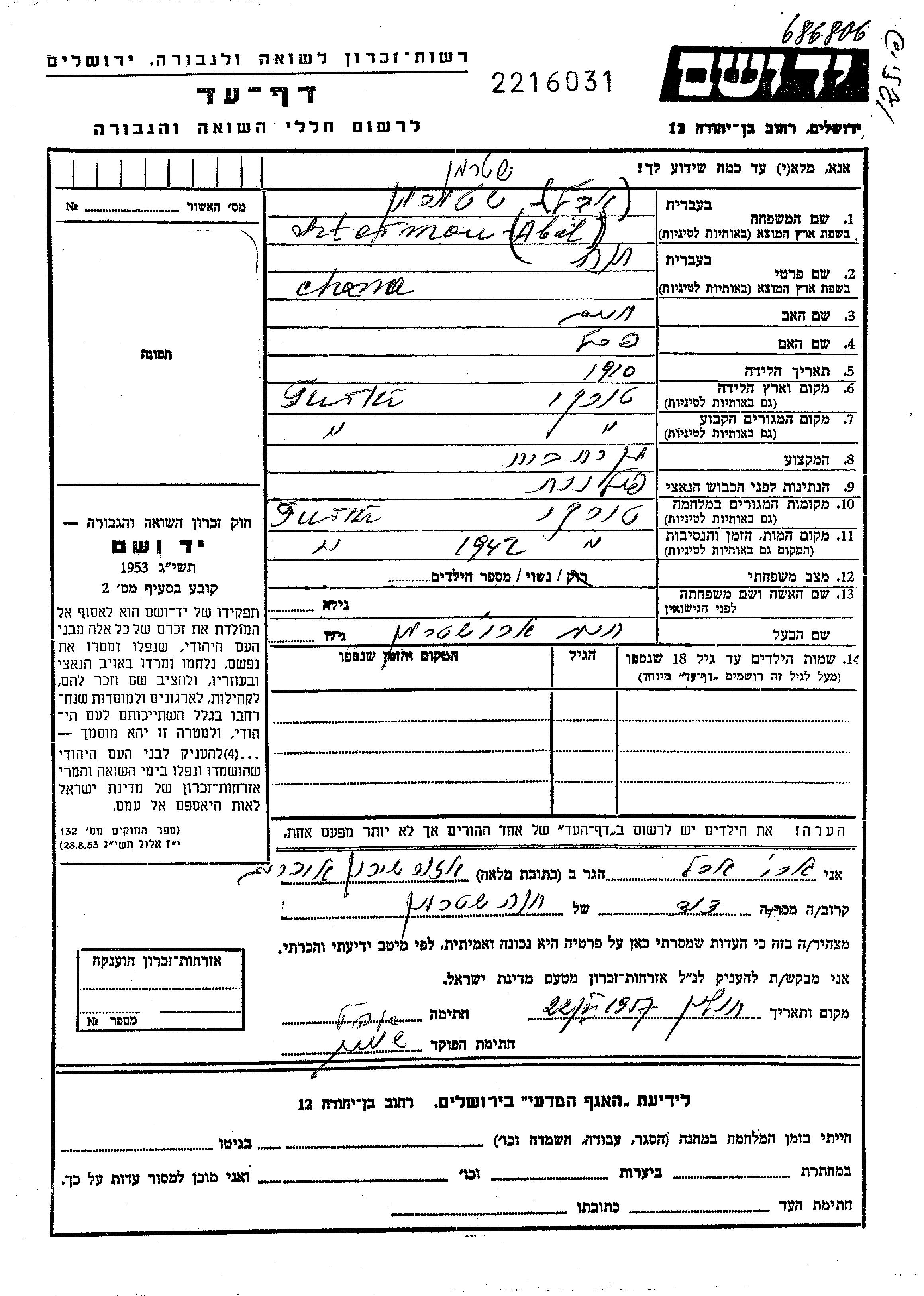 יד ושם - המפעל להנצחת השמות בדפי עד