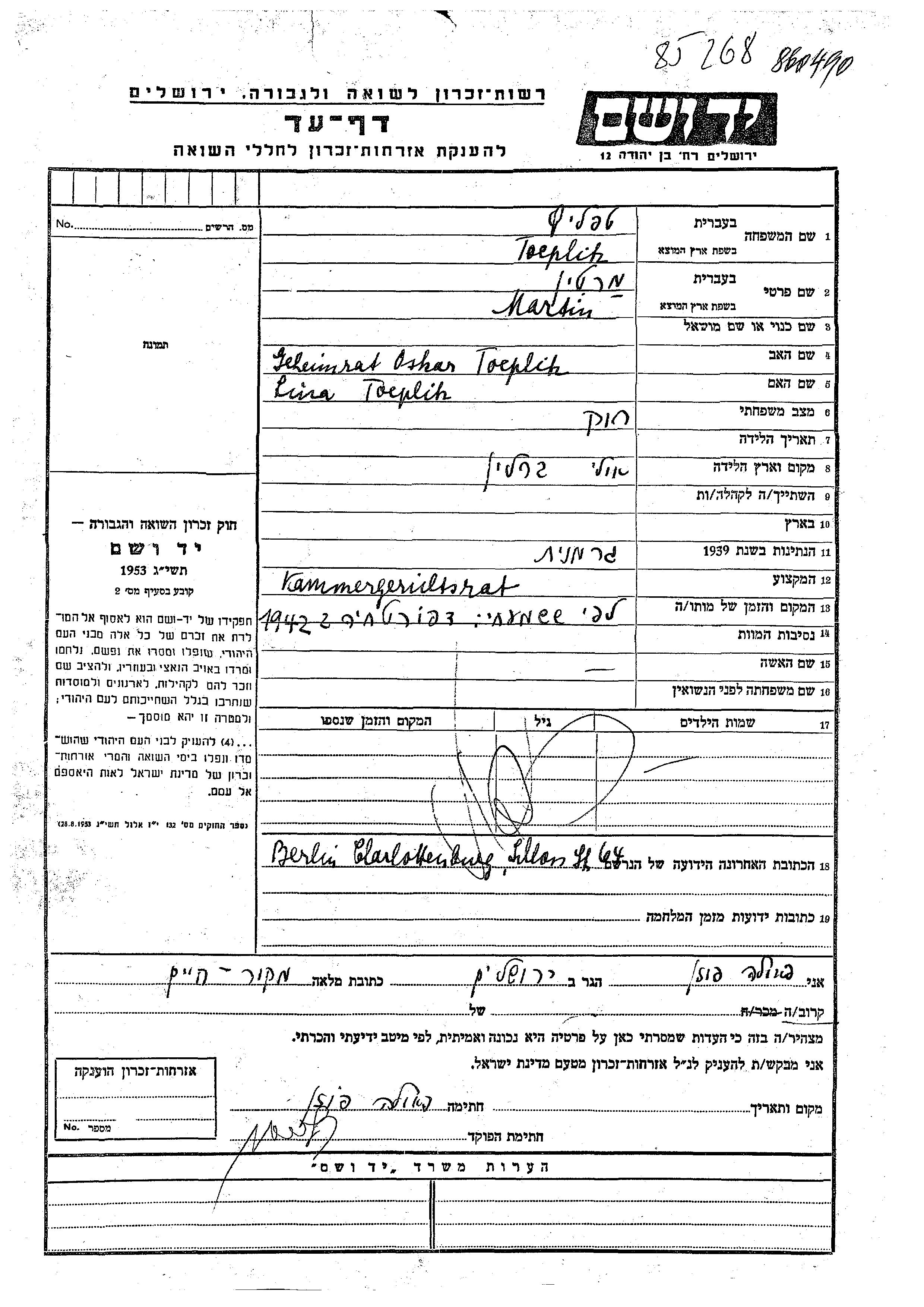 מרטין Toeplitz נולד בBerlin שבגרמניה. לפני מלחמת העולם השניה התגורר בBerlin שבגרמניה.