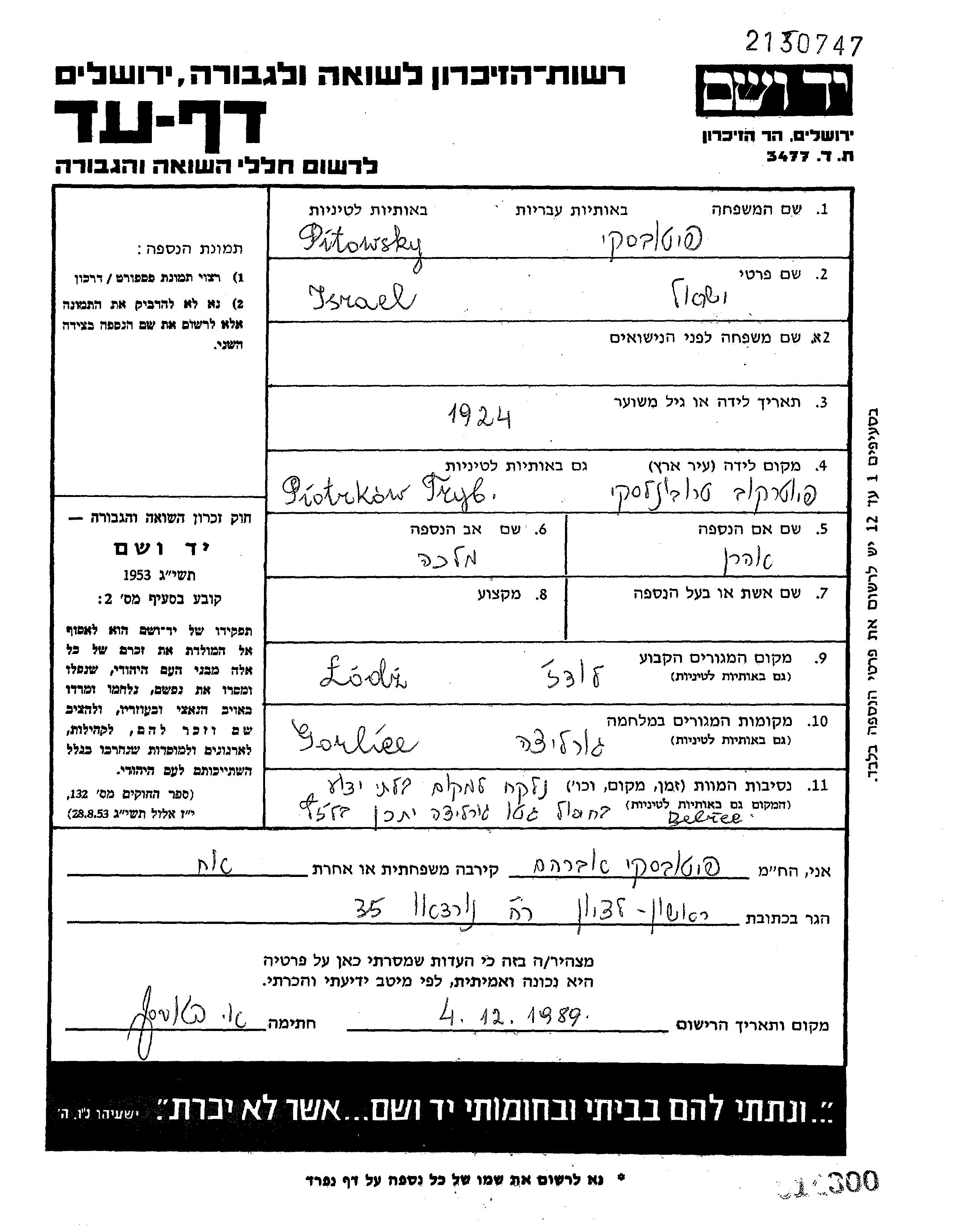 חיפוש שם מוסר דף העד. חיפוש לפי כל שם פרטי, כולל כינוי או שם חיבה
