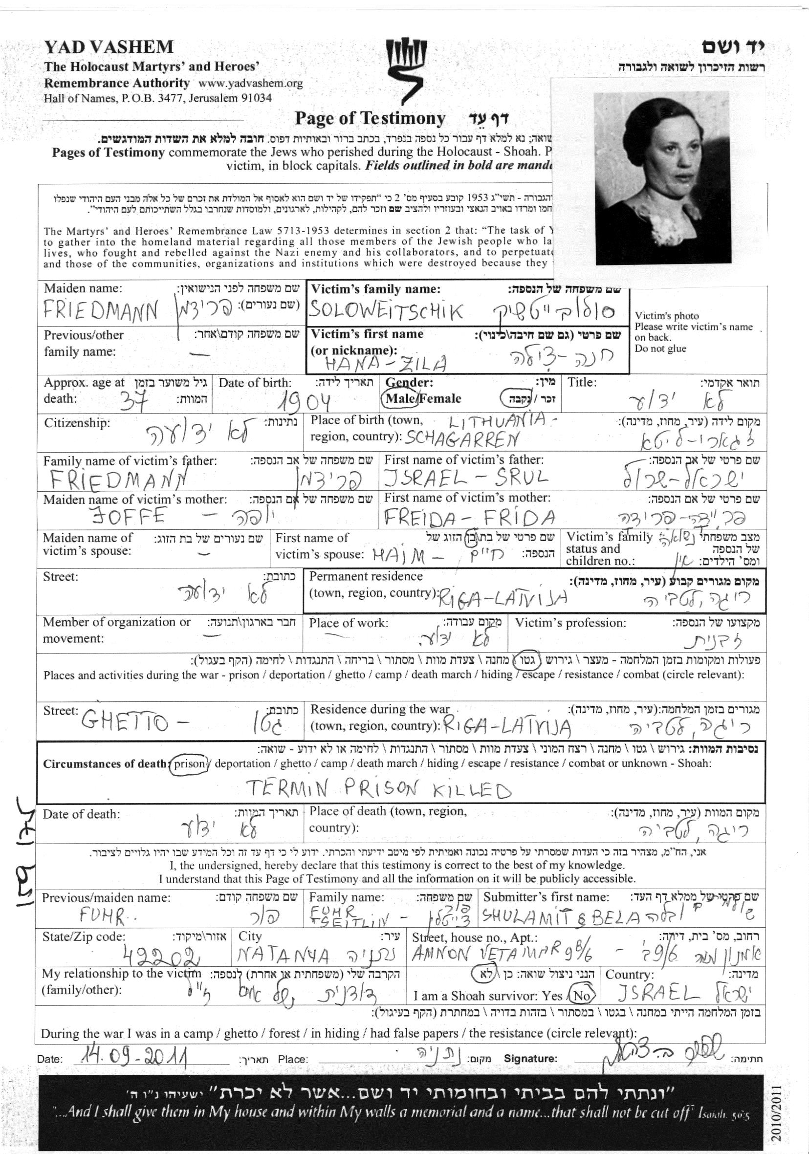 חיפוש שם מוסר דף העד. חיפוש לפי כל שם פרטי, כולל כינוי או שם חיבה