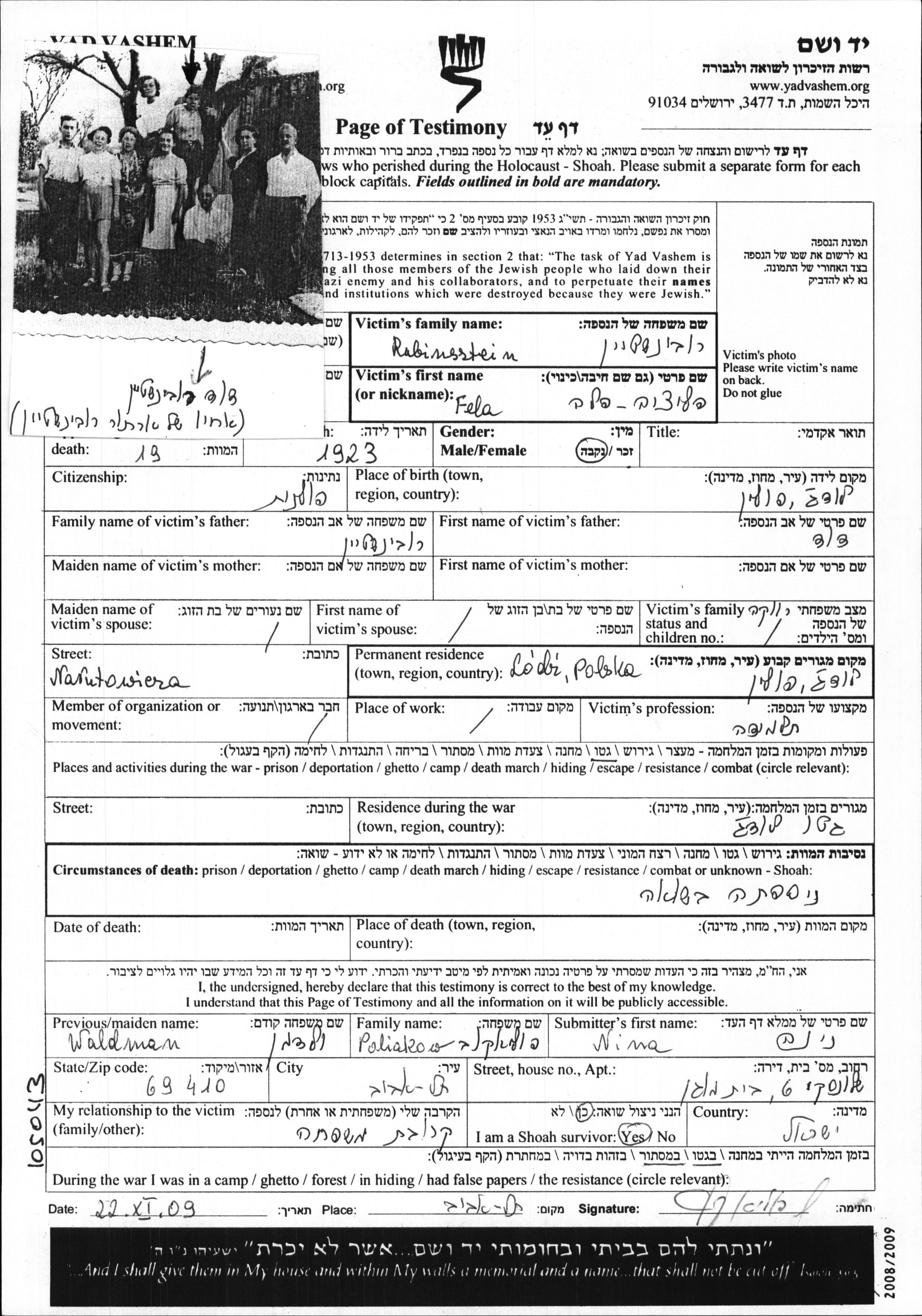 מאגר שמות קרבנות השואה