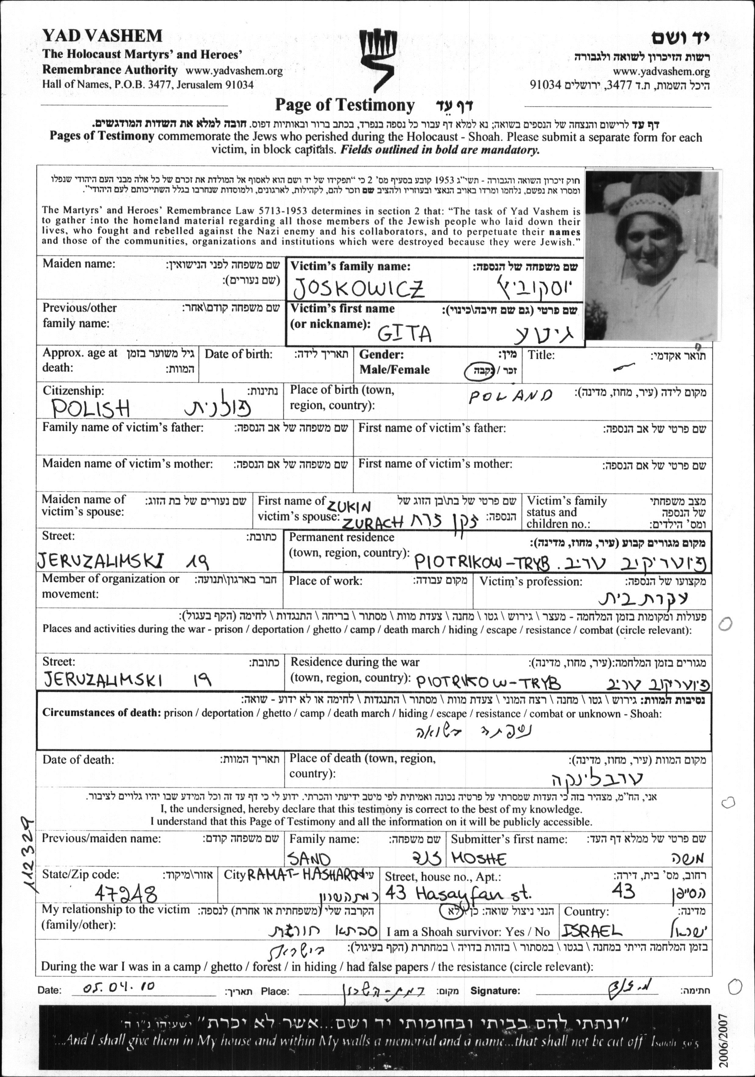 Search by name of any place during the Holocaust period: Town,Village, Camp, Ghetto, District, Region or Country
