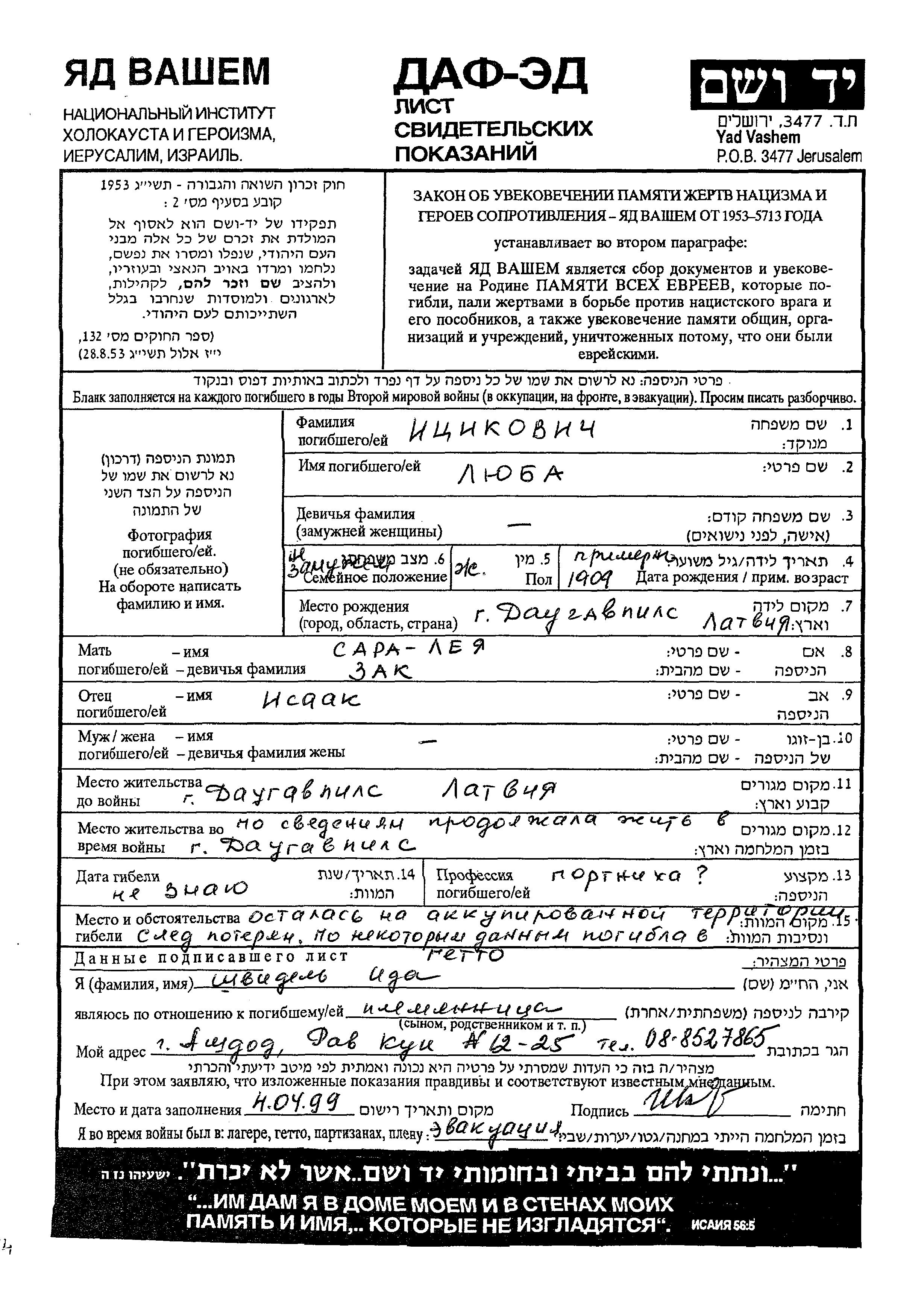 חיפוש שם מוסר דף העד. חיפוש לפי כל שם פרטי, כולל כינוי או שם חיבה