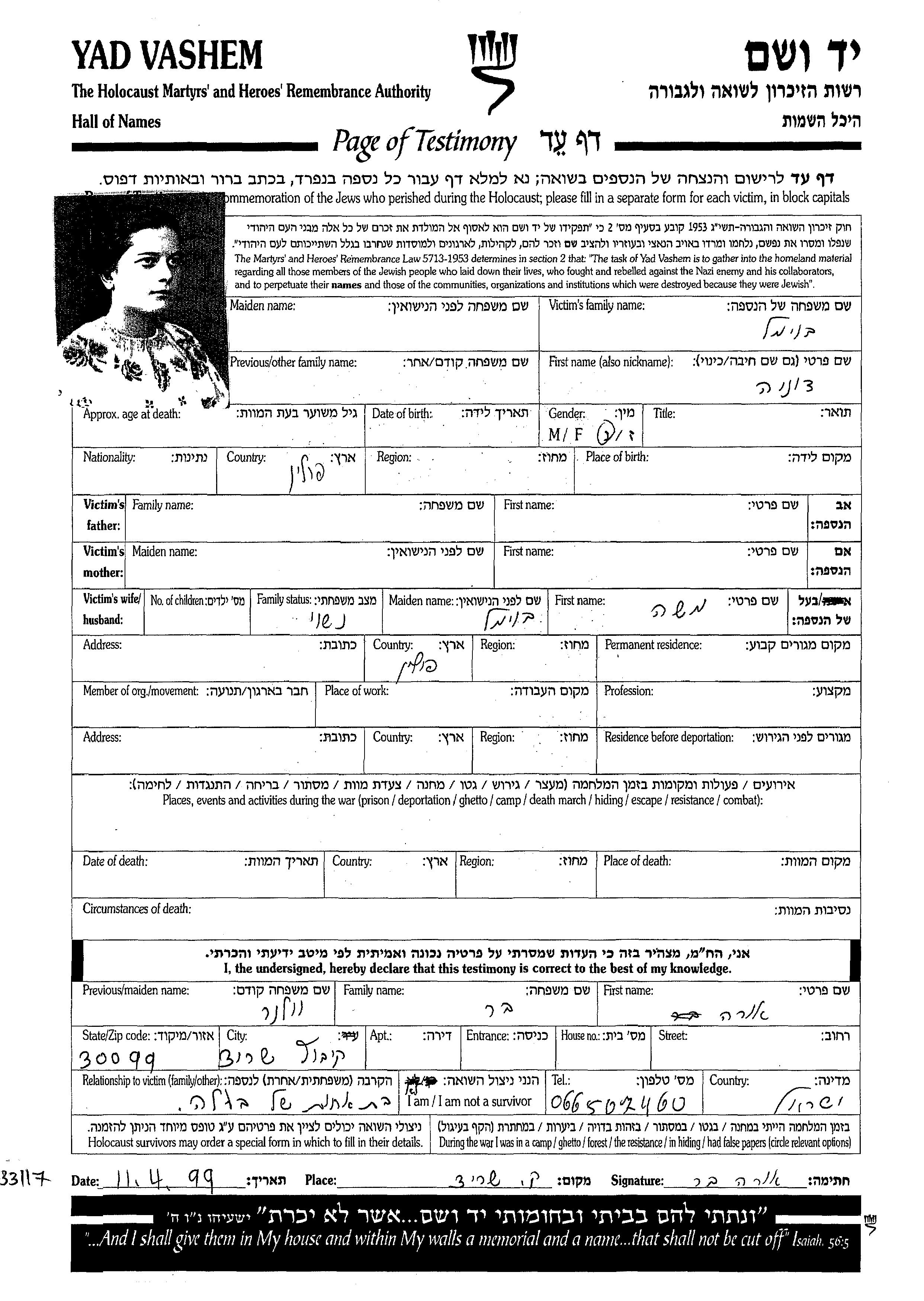 יד ושם - המפעל להנצחת השמות בדפי עד