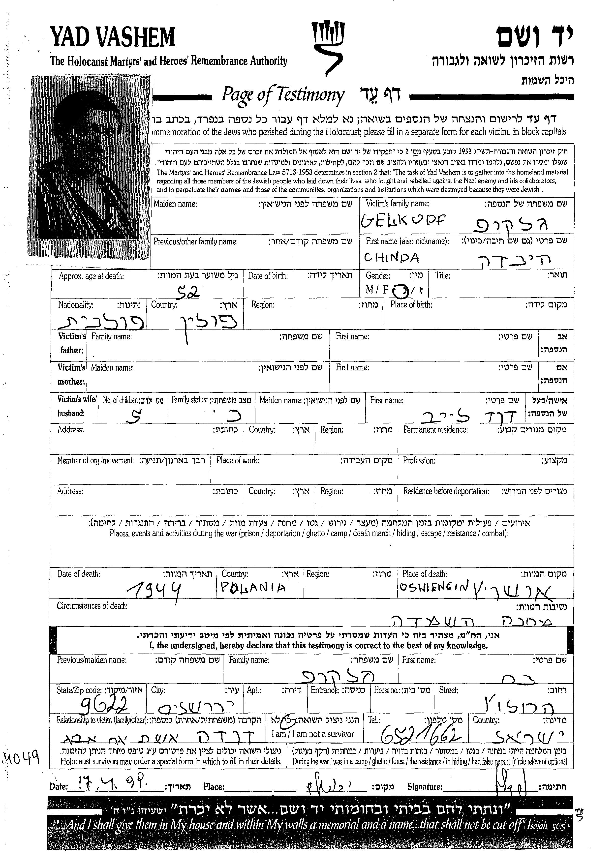חיפוש שם מוסר דף העד. חיפוש לפי כל שם פרטי, כולל כינוי או שם חיבה