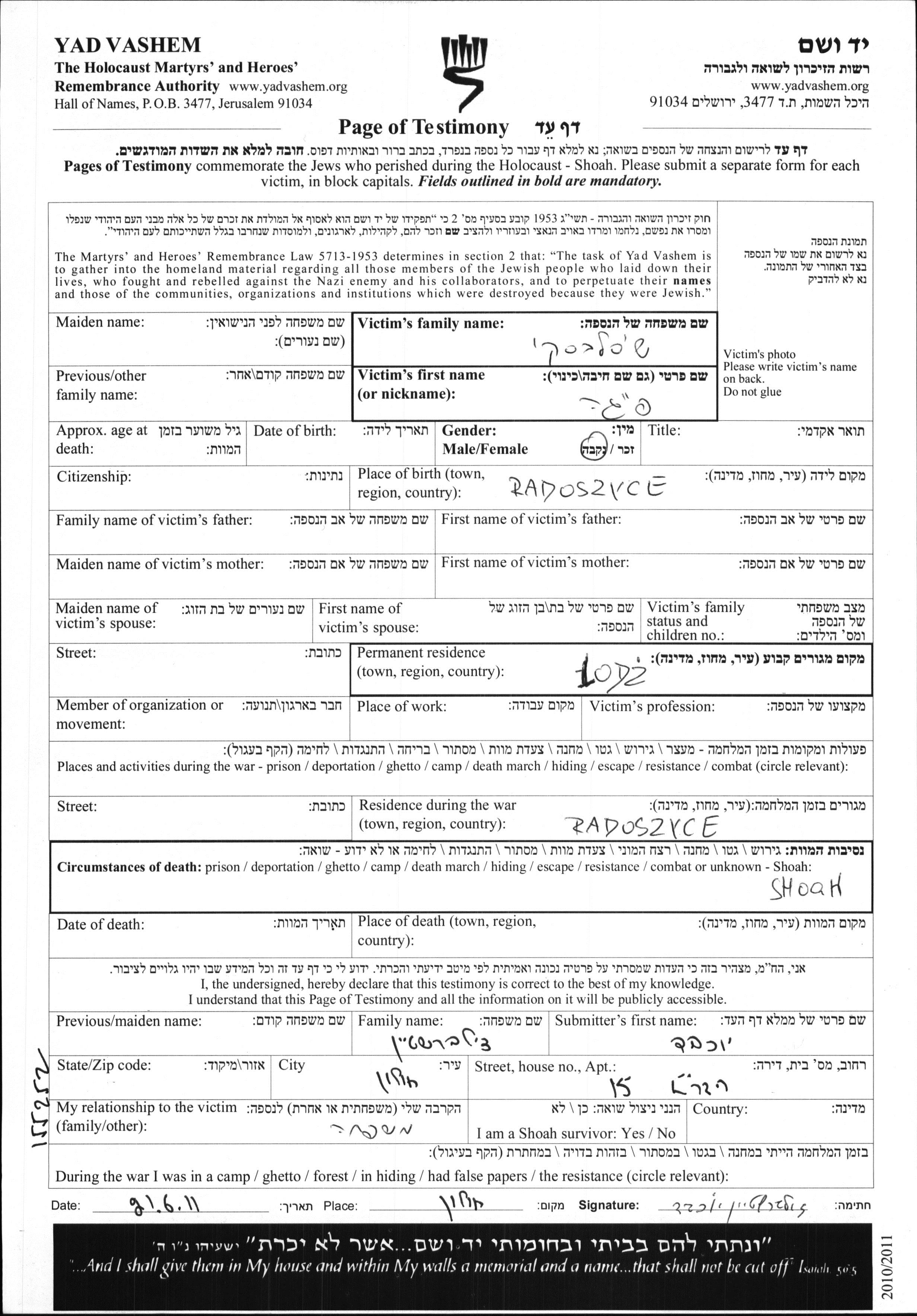 | שיסלבסקי | פייגה | Lodz, פולין | דף-עד | |