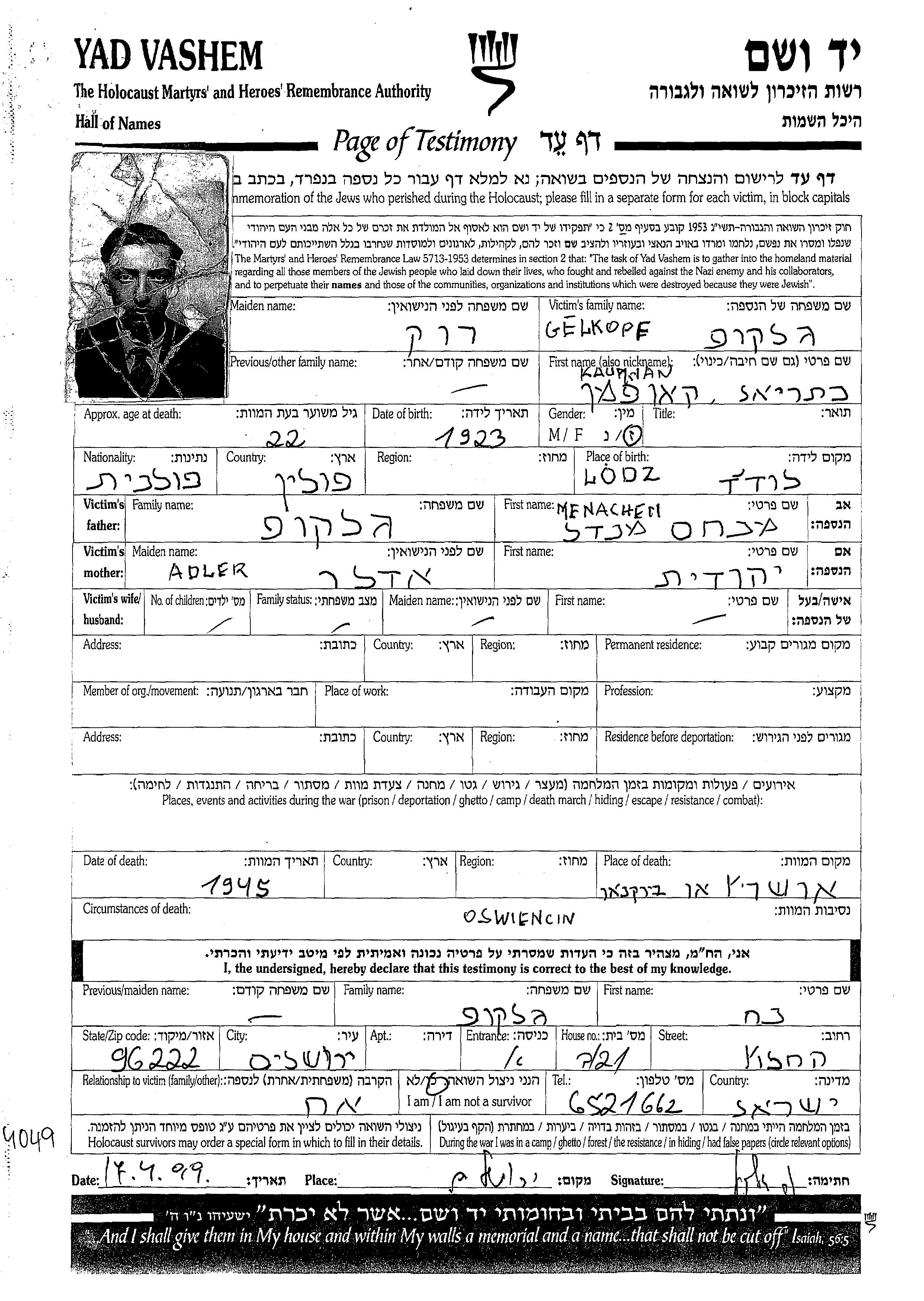יד ושם - המפעל להנצחת השמות בדפי עד