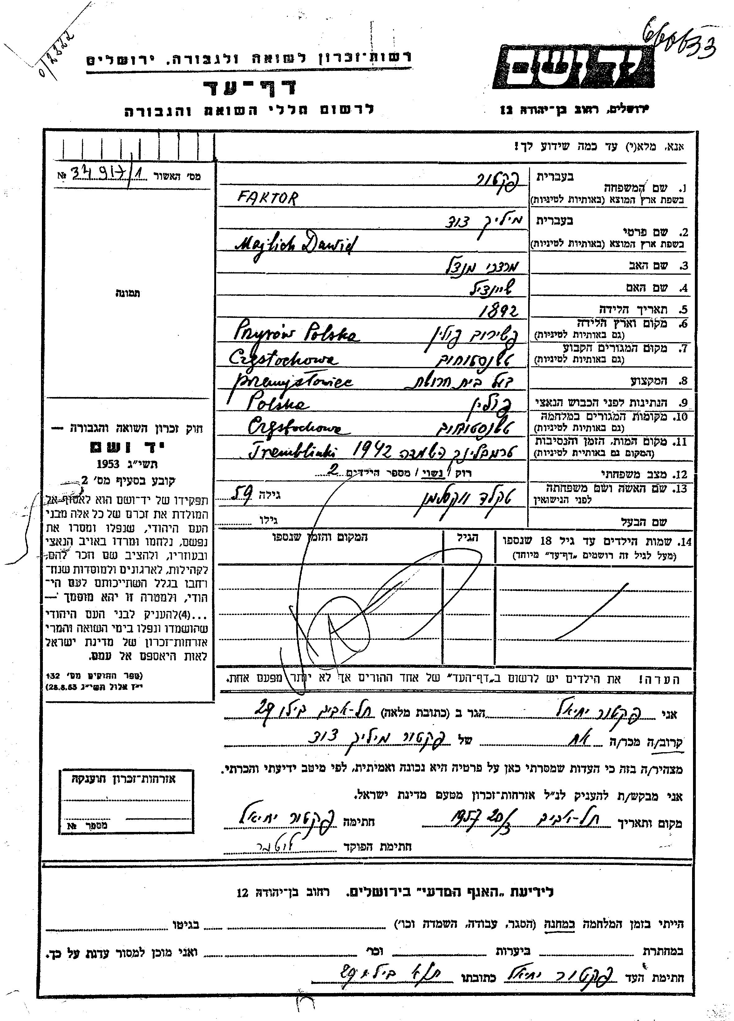 חיפוש שם מוסר דף העד. חיפוש לפי שם משפחה; כולל גם תוצאות חיפוש לפי שם הנעורים של אישה לפני הנישואין