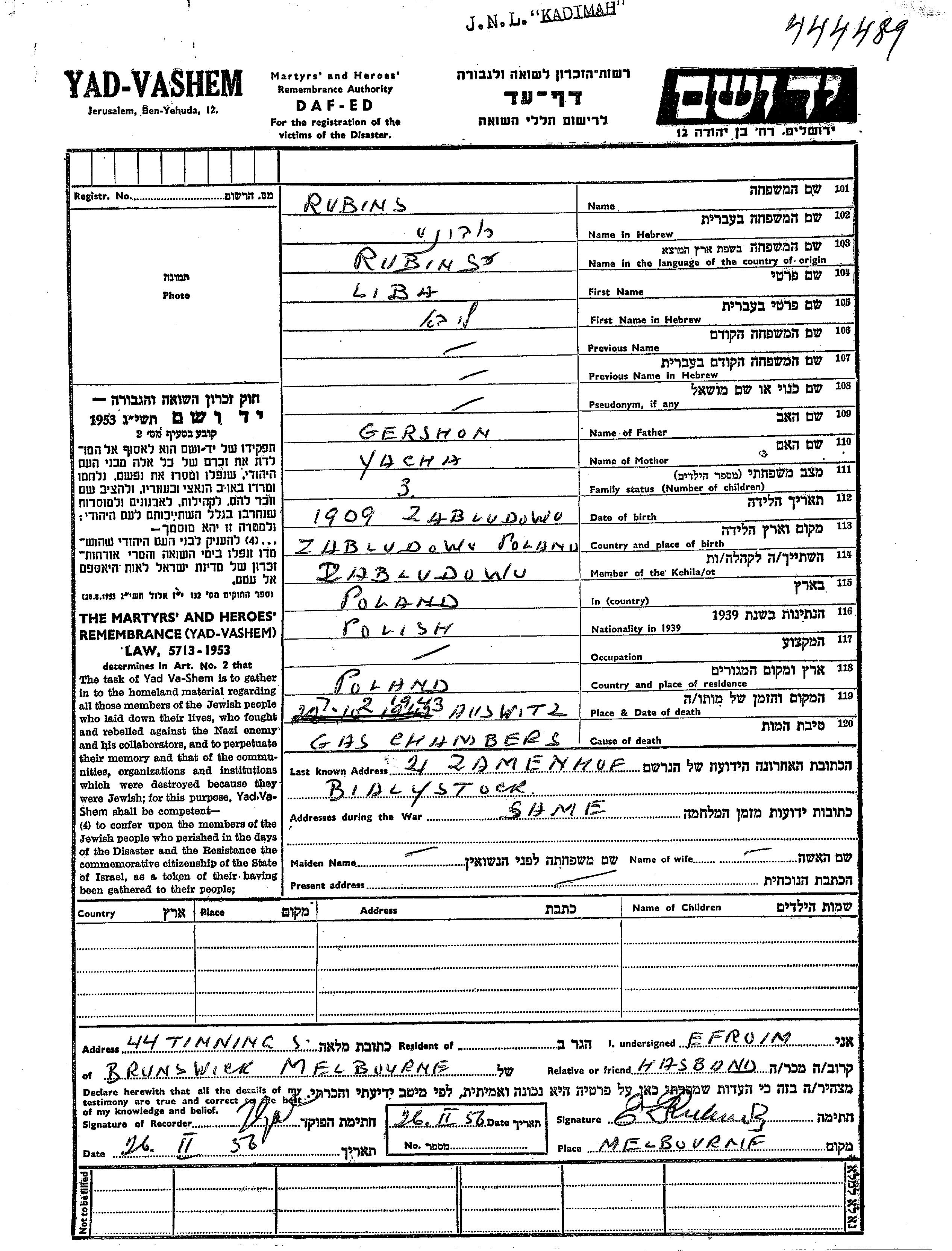 יד ושם - המפעל להנצחת השמות בדפי עד
