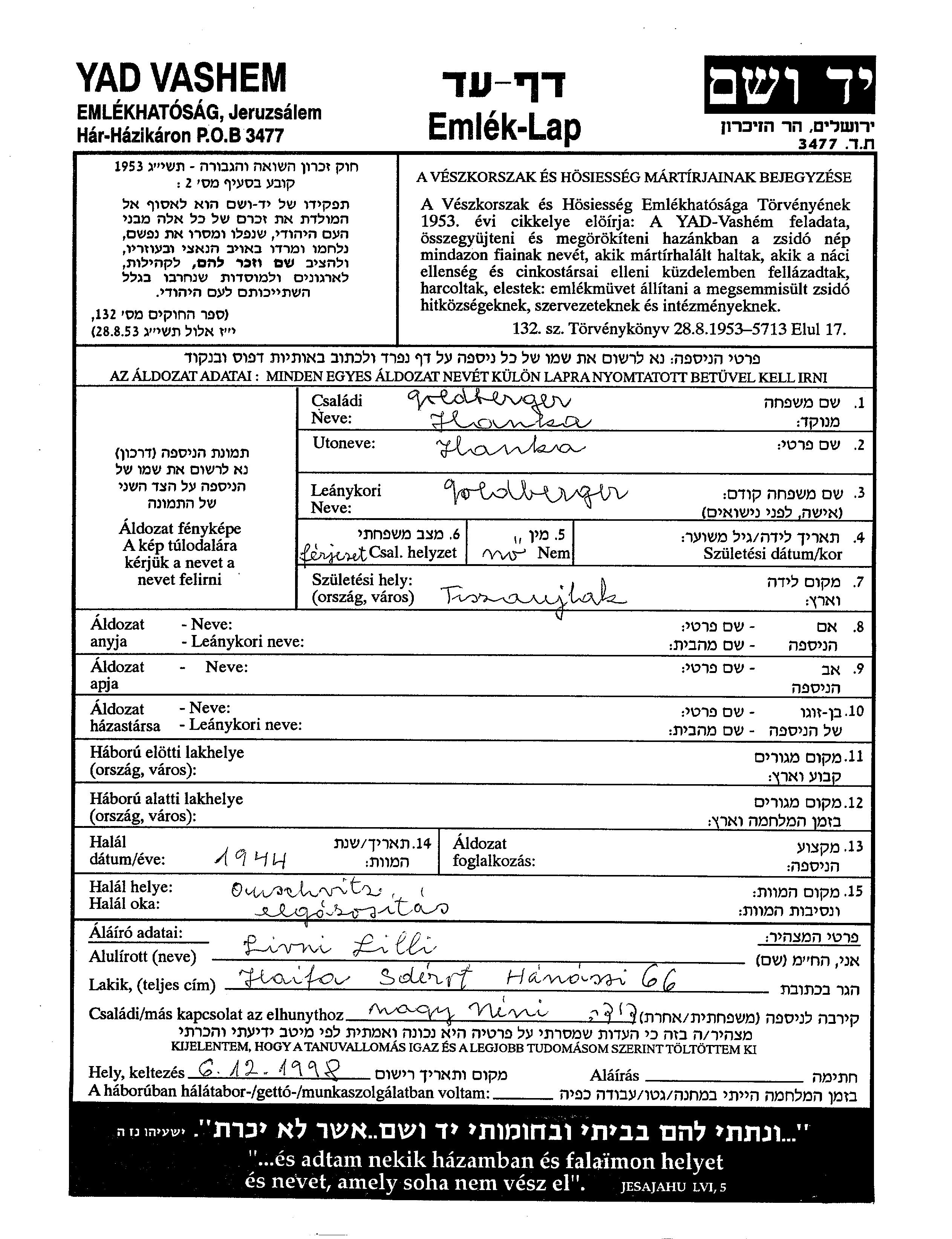 יד ושם - המפעל להנצחת השמות בדפי עד
