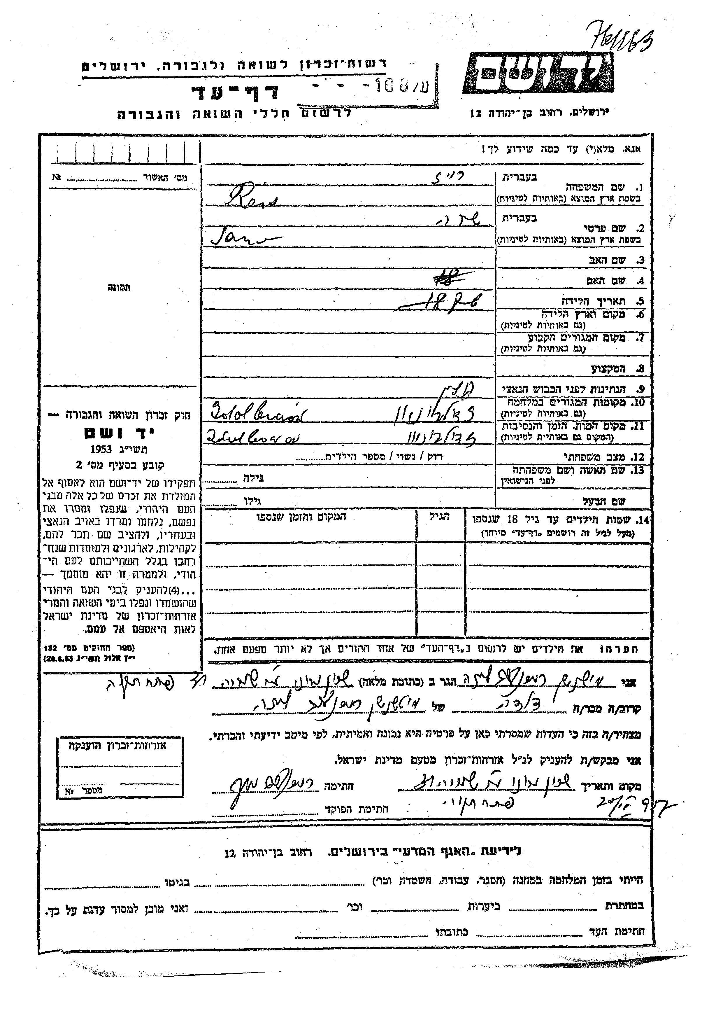 חיפוש שם מוסר דף העד. חיפוש לפי כל שם פרטי, כולל כינוי או שם חיבה