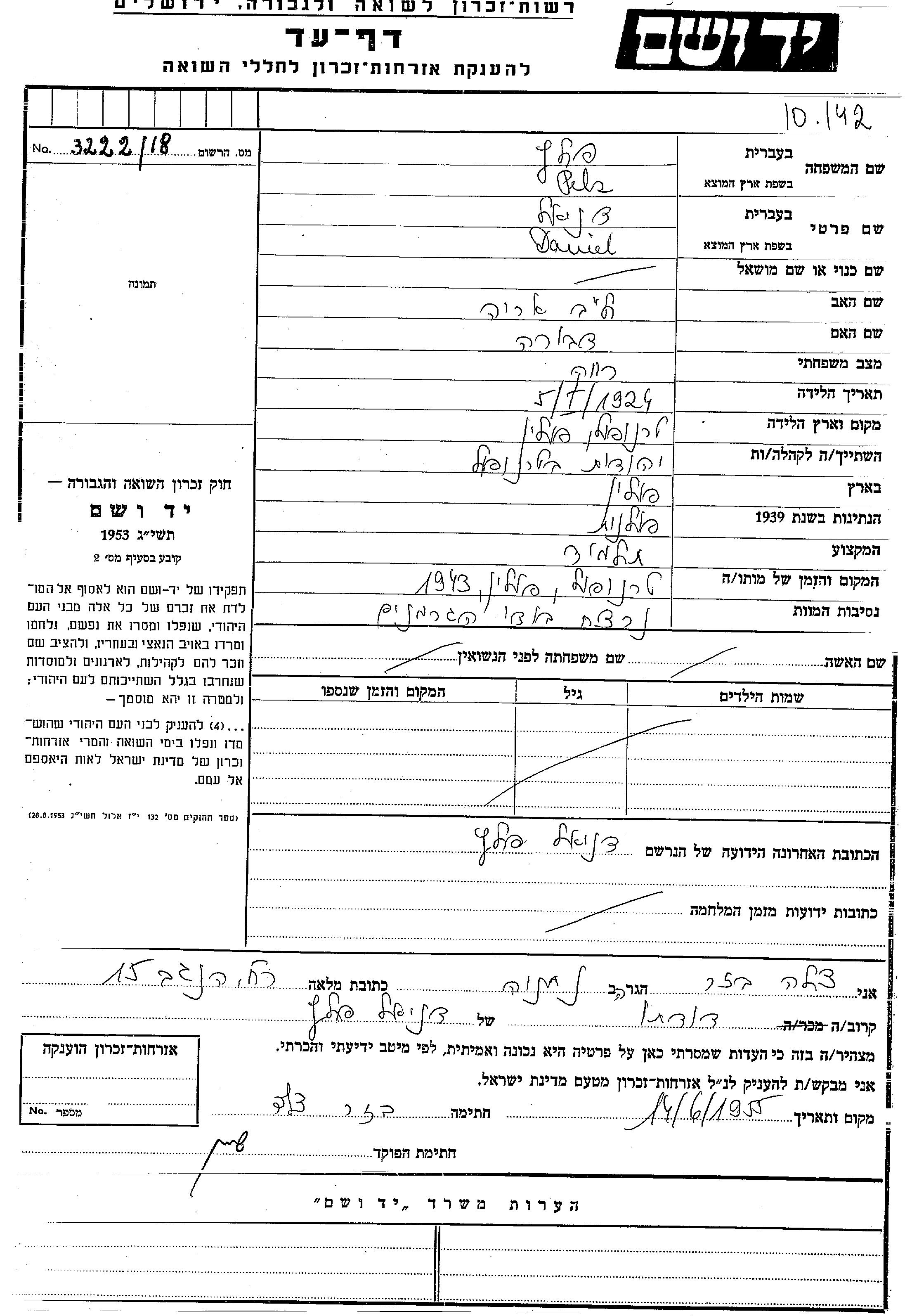 חיפוש שם מוסר דף העד. חיפוש לפי שם משפחה; כולל גם תוצאות חיפוש לפי שם הנעורים של אישה לפני הנישואין