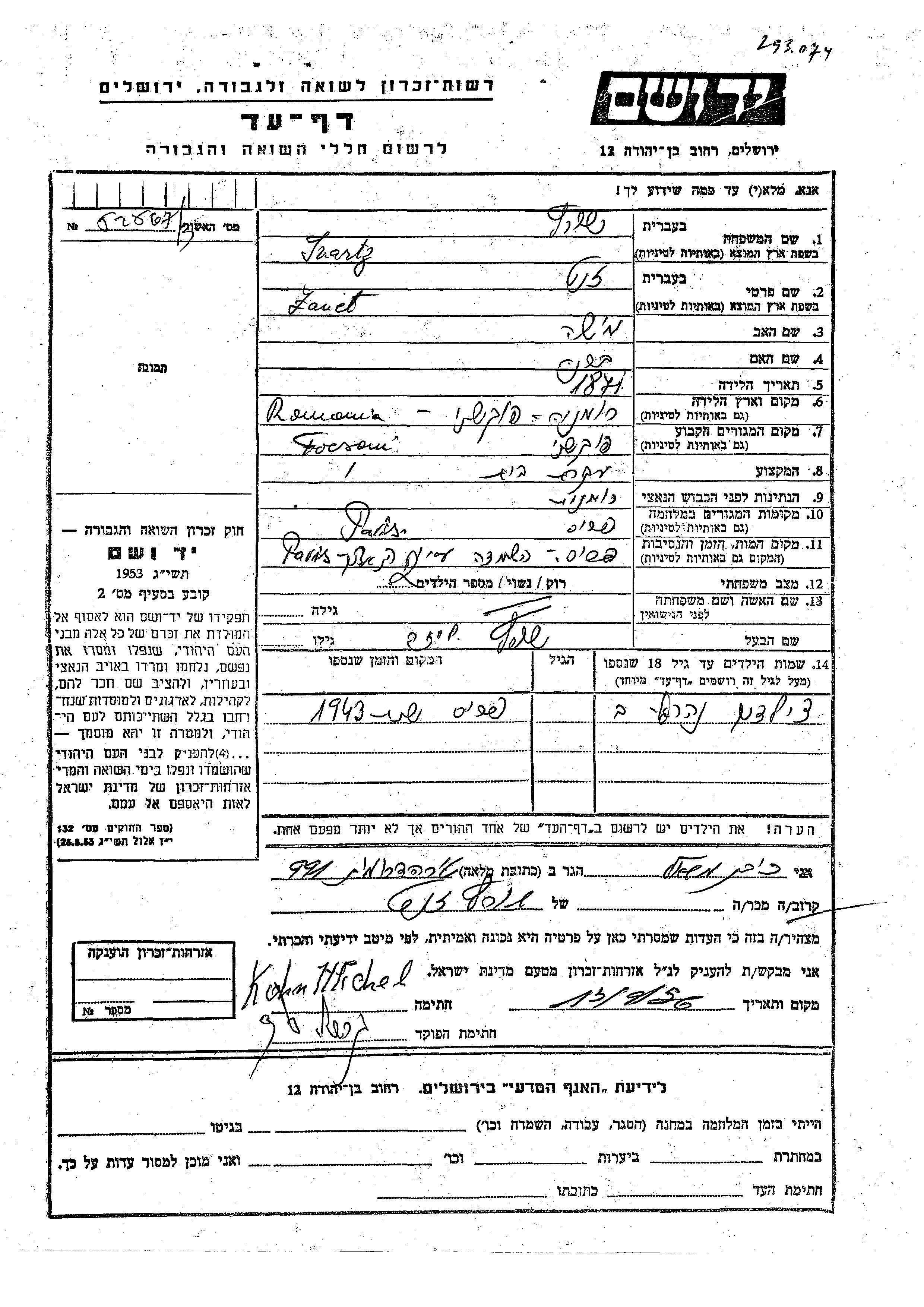 Zanet Svartz נולדה בFocsani שברומניה בשנת 1871 למישה וברנה. היא היתה עקרת בית ונשואה ללייזר. לפני מלחמת העולם השניה התגוררה בFocsani שברומניה. בזמן המלחמה היא היתה בParis שבצרפת. היא נרצחה בשואה. מקום המוות: Paris שבצרפת.