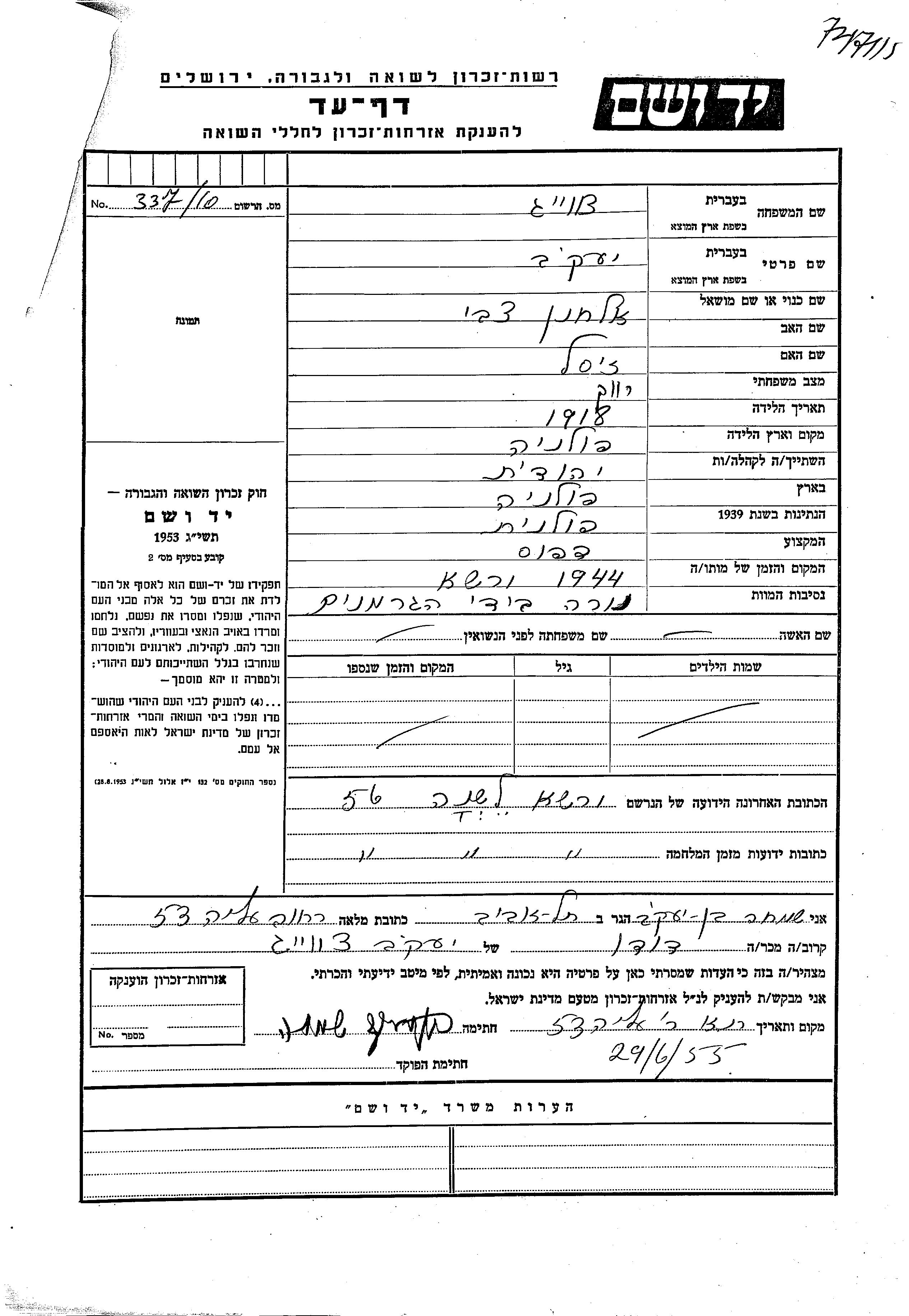 יד ושם - המפעל להנצחת השמות בדפי עד