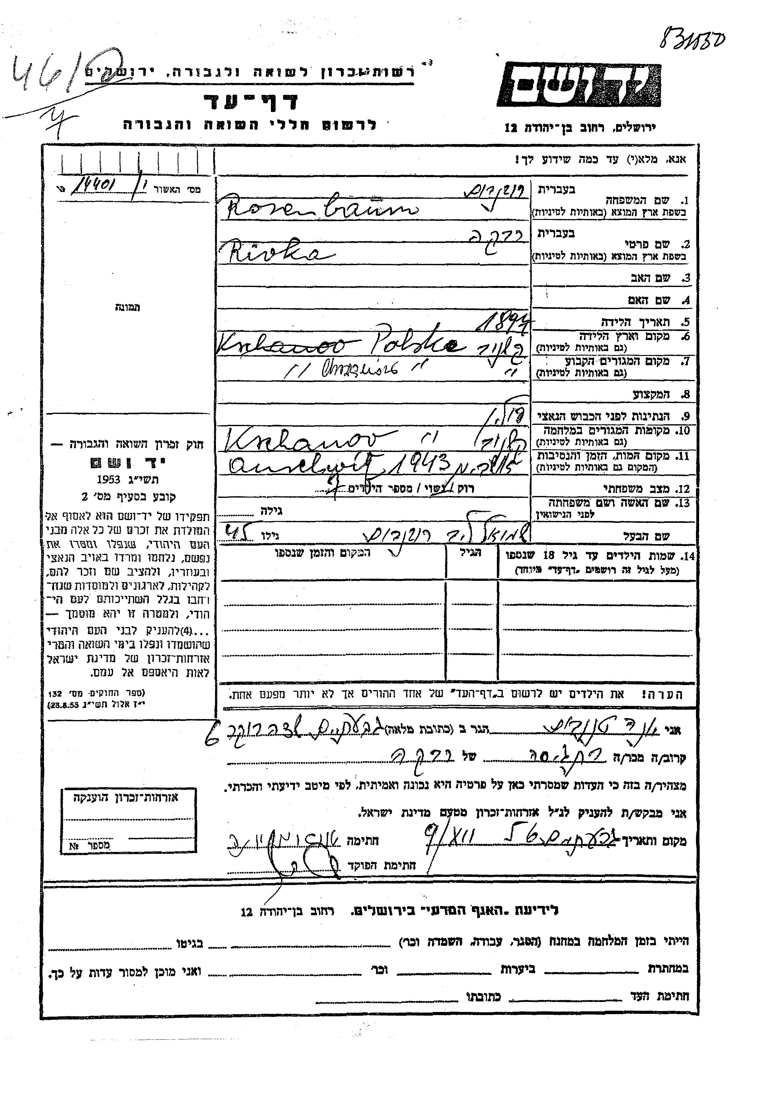Rosenbaum רבקה 1897 Chrzanow, פולין דף-עד