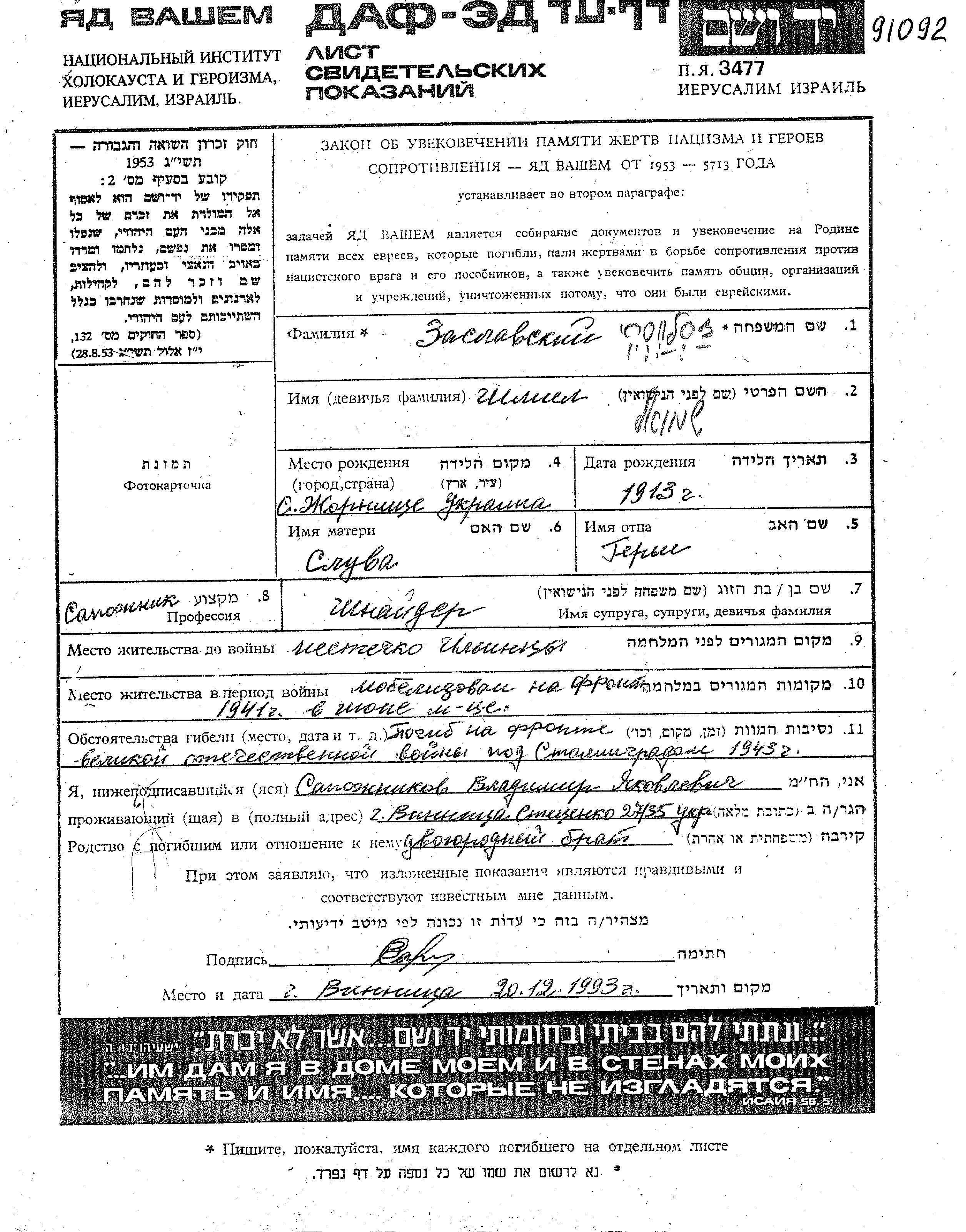 חיפוש שם מוסר דף העד. חיפוש לפי כל שם פרטי, כולל כינוי או שם חיבה