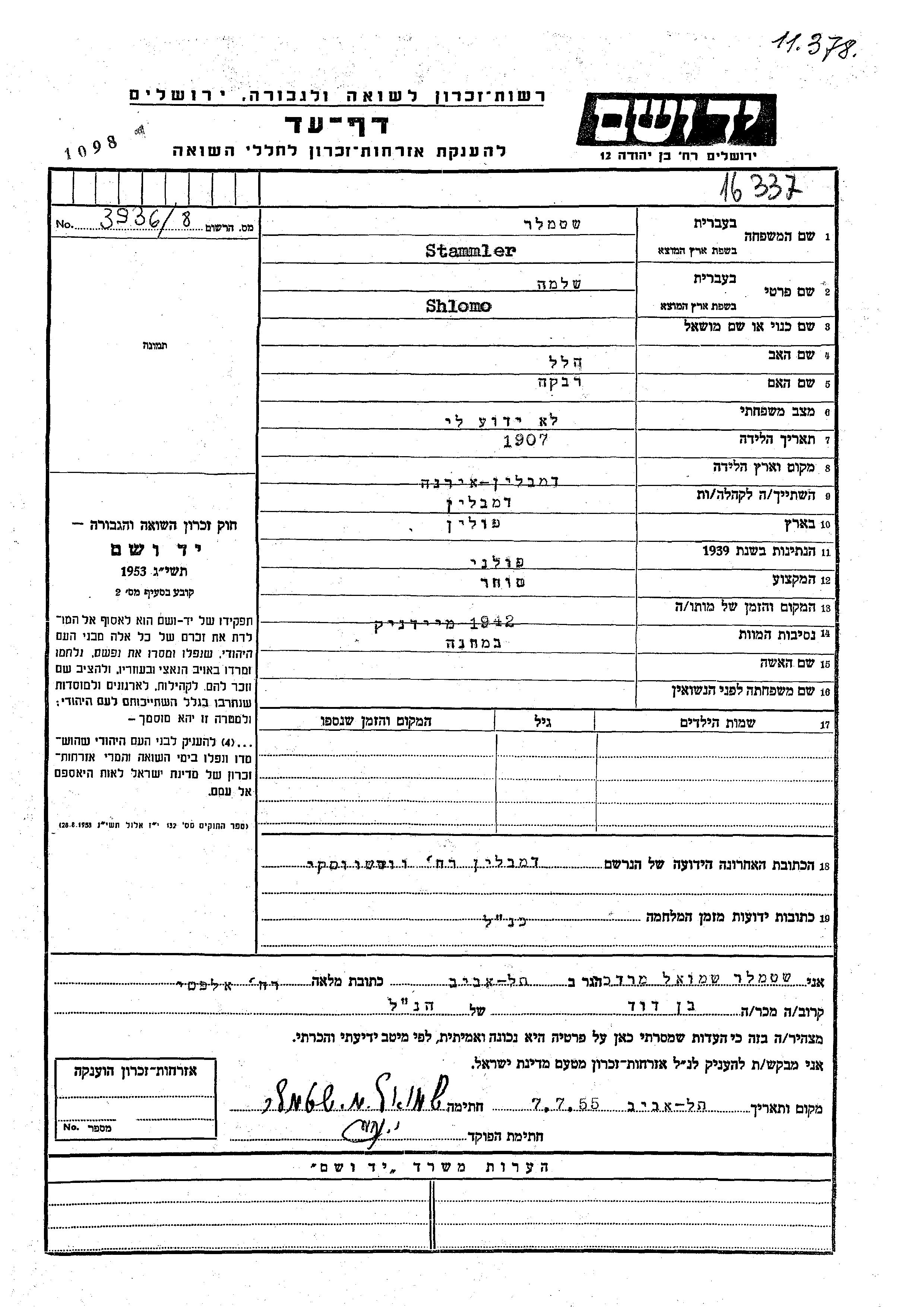 חיפוש שם מוסר דף העד. חיפוש לפי כל שם פרטי, כולל כינוי או שם חיבה