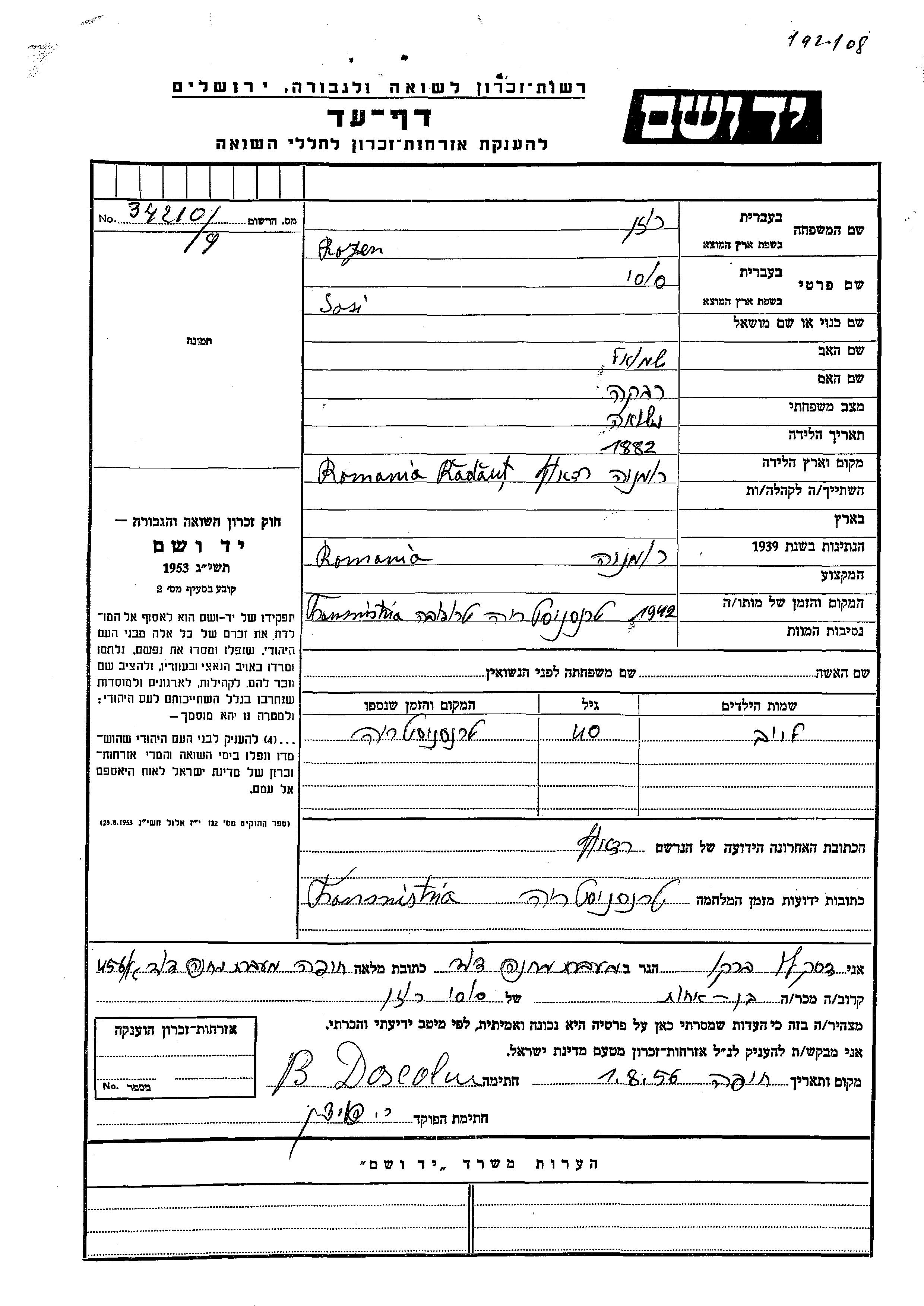 יד ושם - המפעל להנצחת השמות בדפי עד