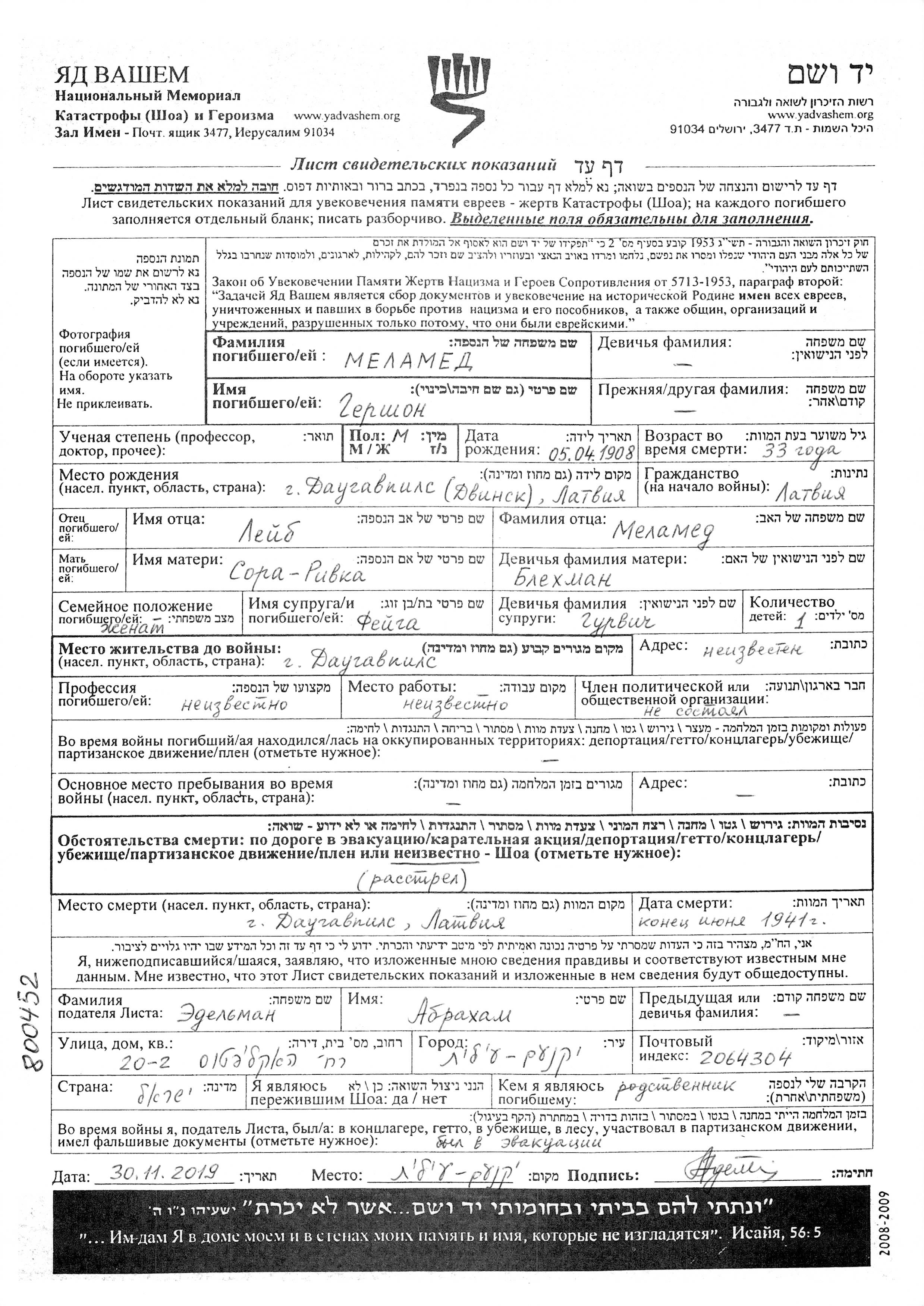 מלמד גרשון 1908 Daugavpils, לטביה דף-עד