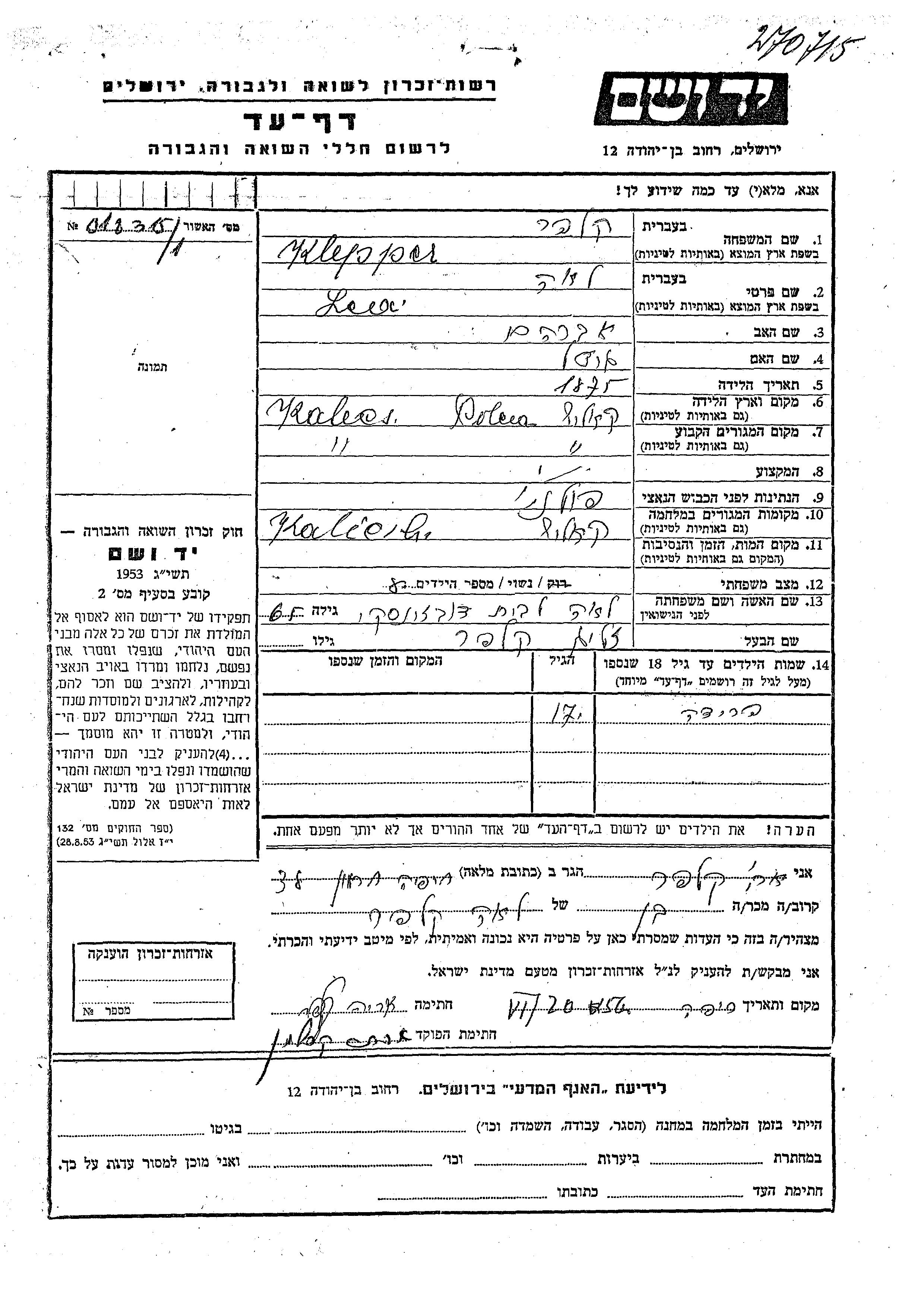 יד ושם - המפעל להנצחת השמות בדפי עד
