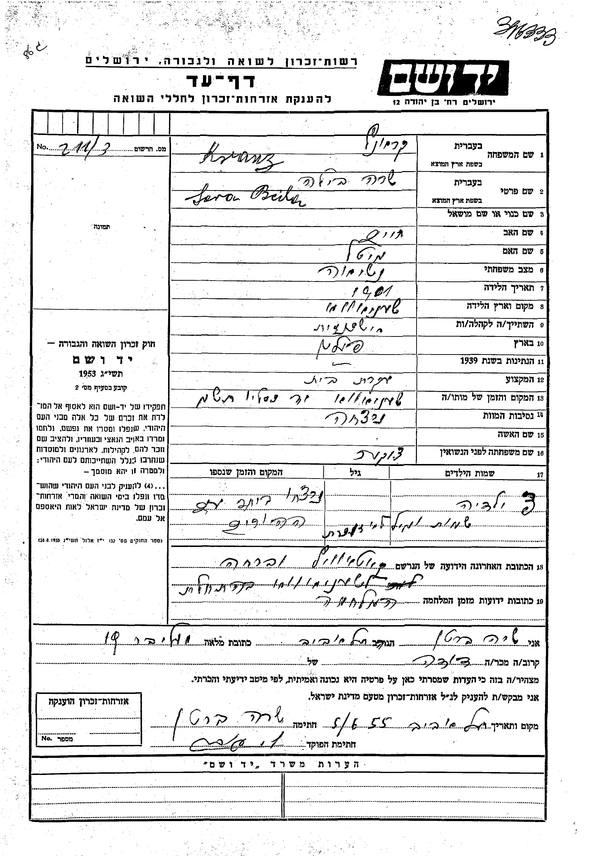 יד ושם - המפעל להנצחת השמות בדפי עד