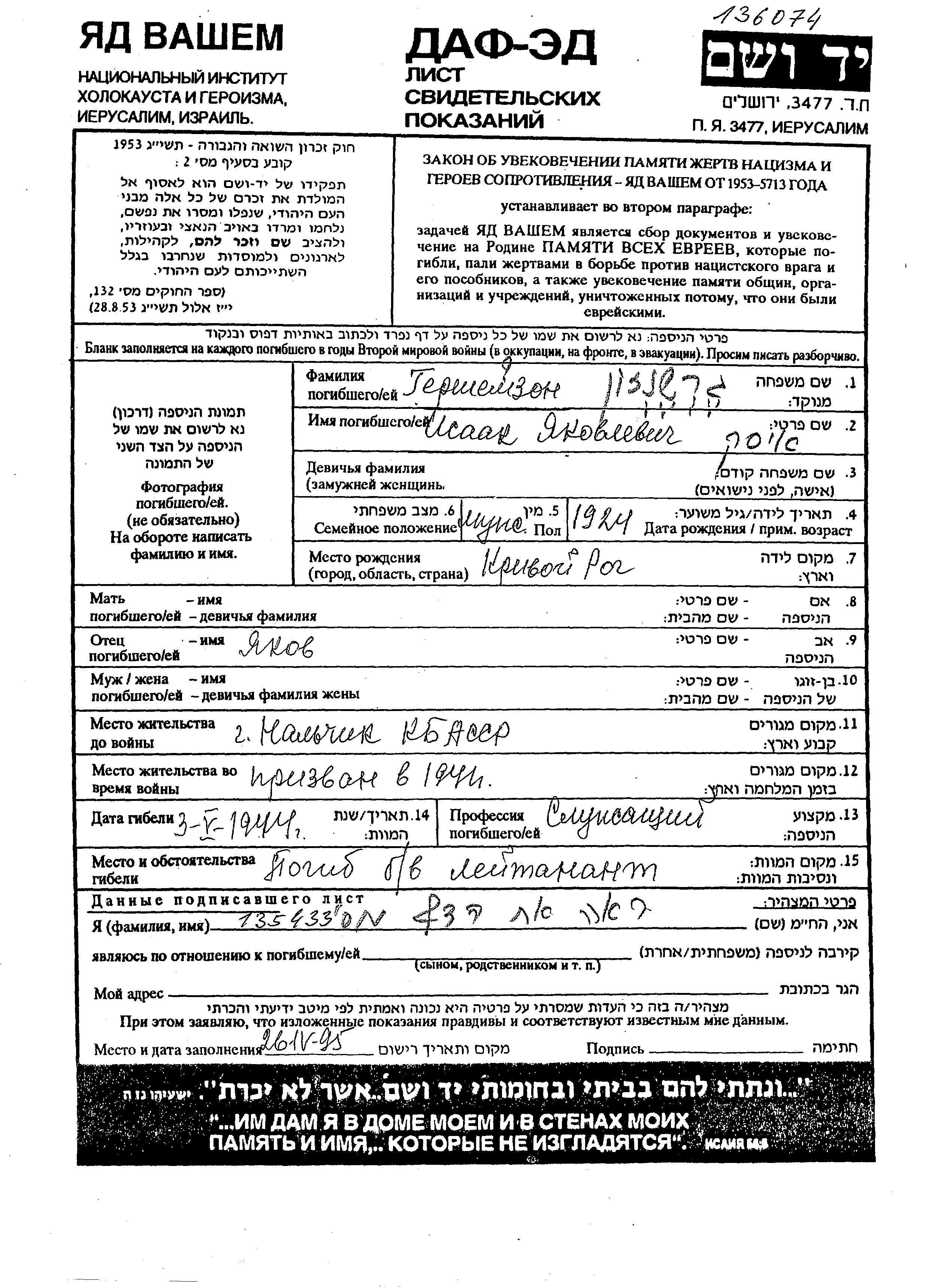 יד ושם - המפעל להנצחת השמות בדפי עד