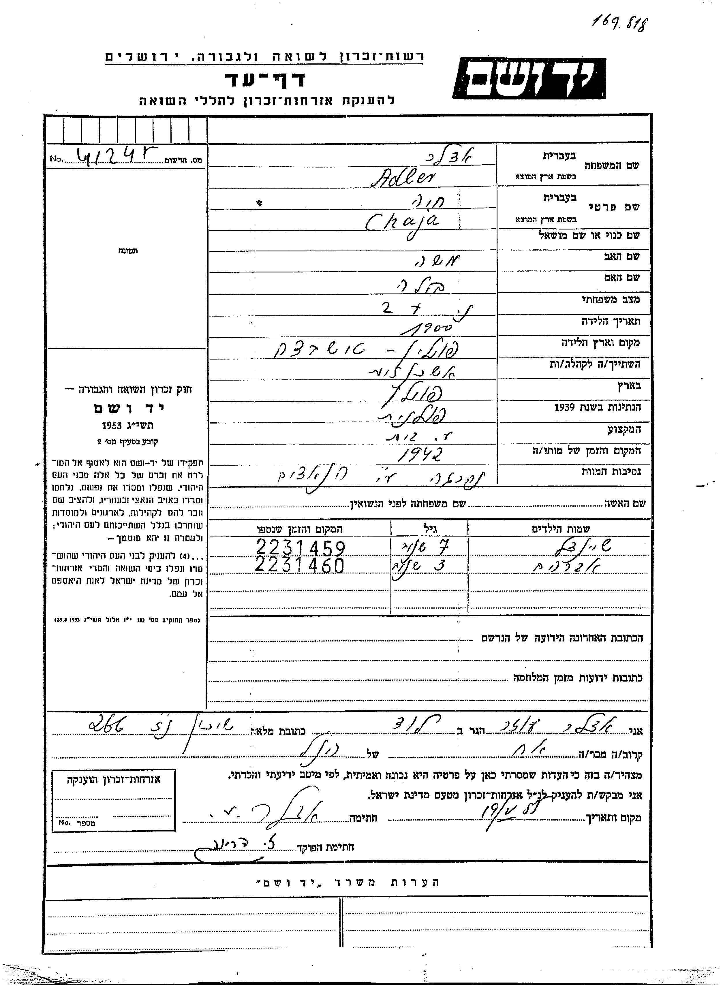 יד ושם - המפעל להנצחת השמות בדפי עד