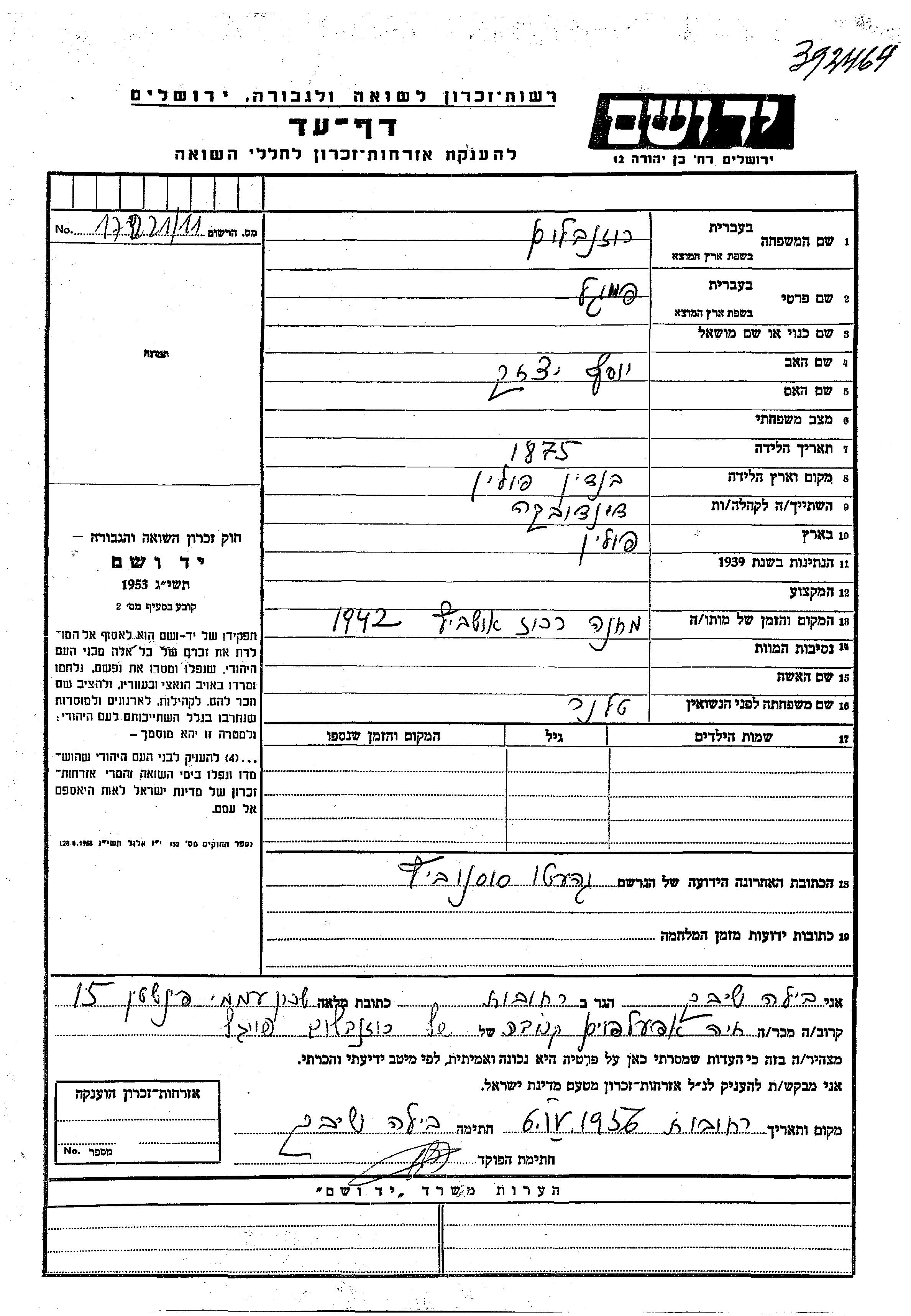 יד ושם - המפעל להנצחת השמות בדפי עד