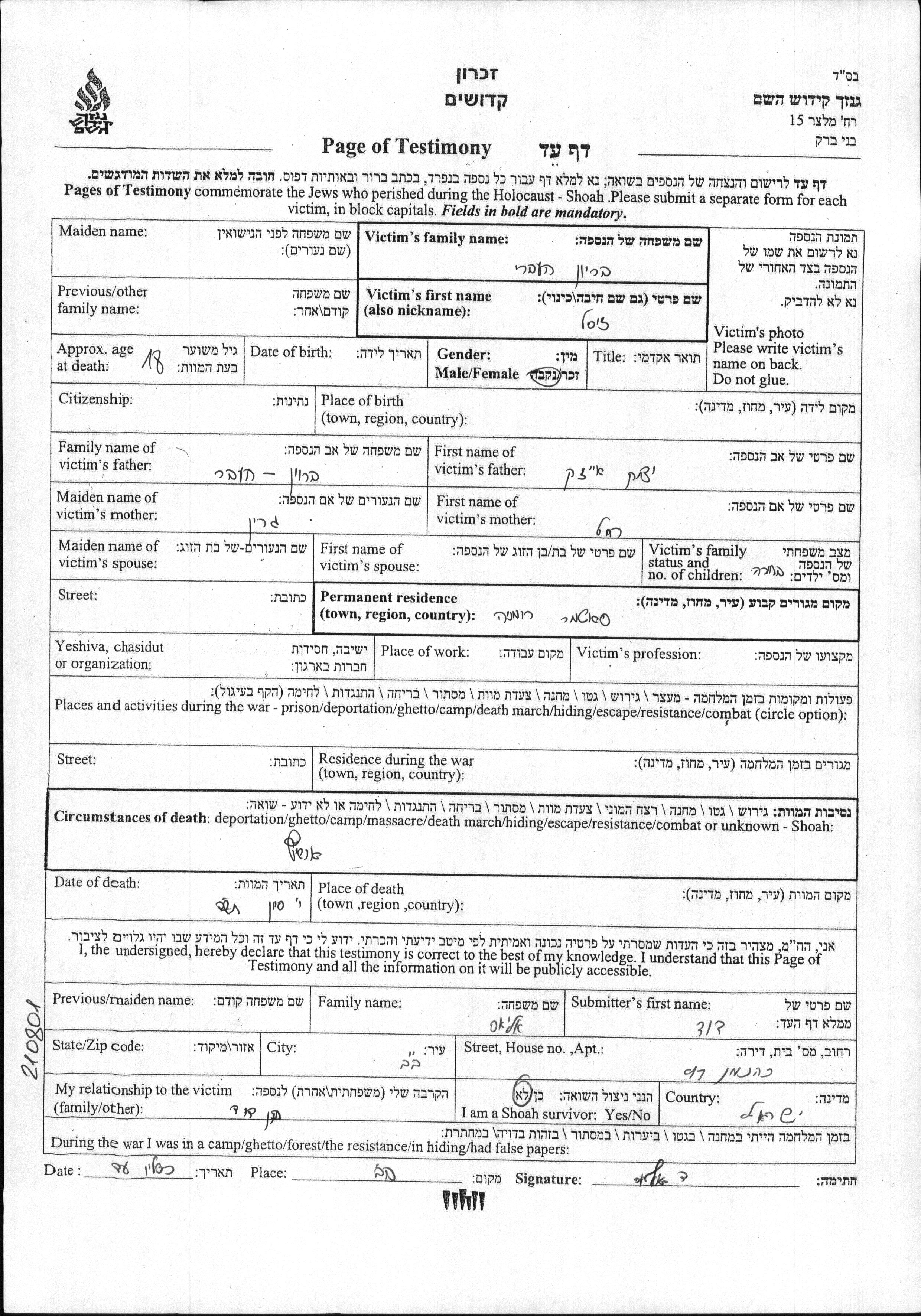 יד ושם - המפעל להנצחת השמות בדפי עד