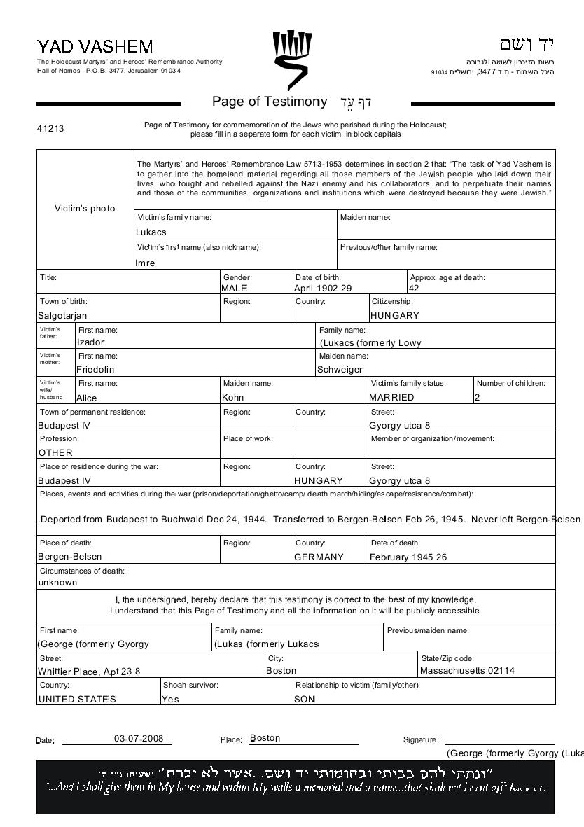 שמות נרדפים ושמות קשורים © מאז 2004. יד ושם. כל הזכויות שמורות.