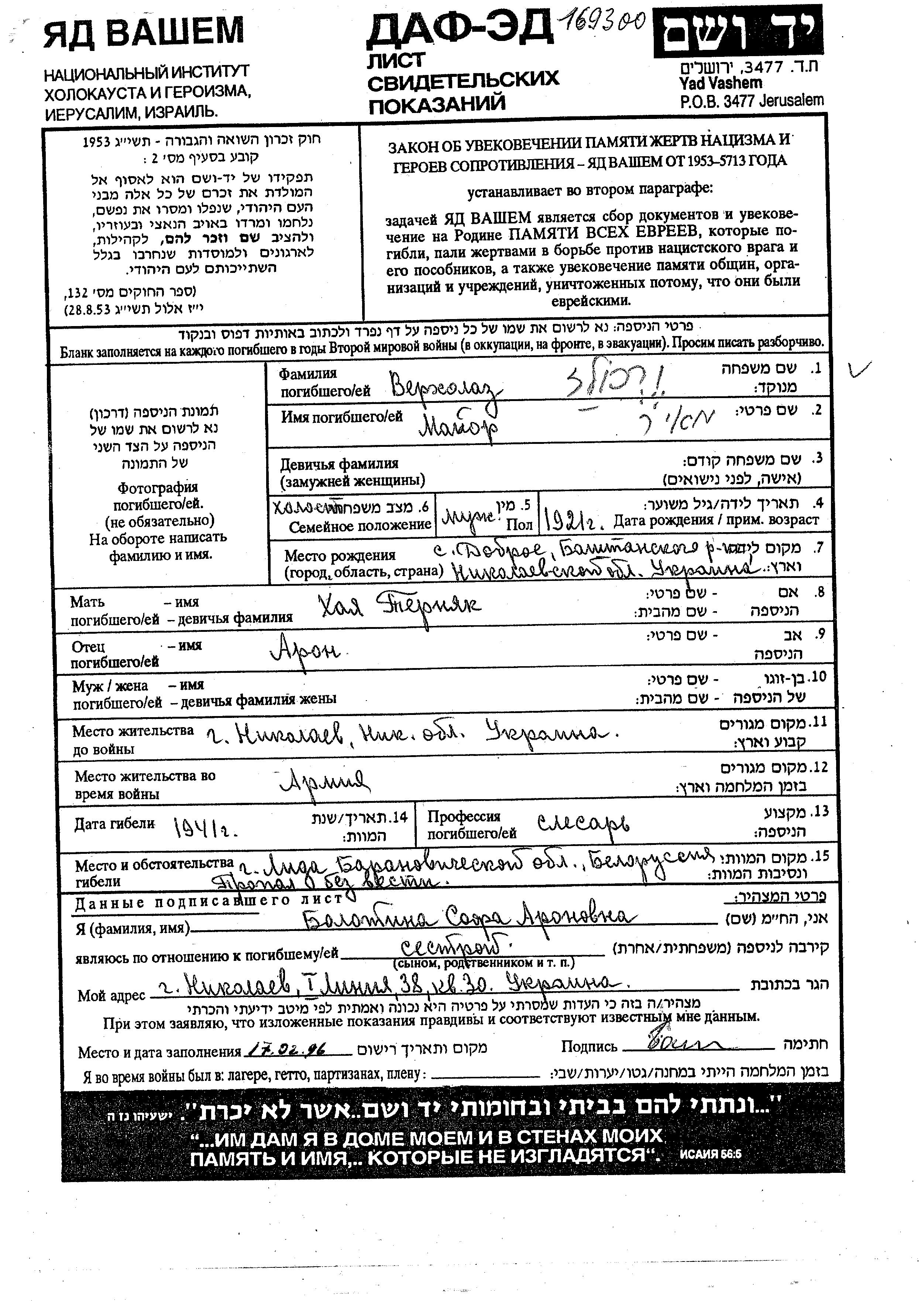 יד ושם - המפעל להנצחת השמות בדפי עד