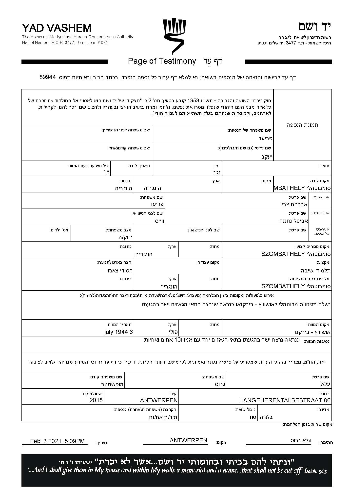 פריעד יעקב Szombathely, הונגריה דף-עד (מקוון)