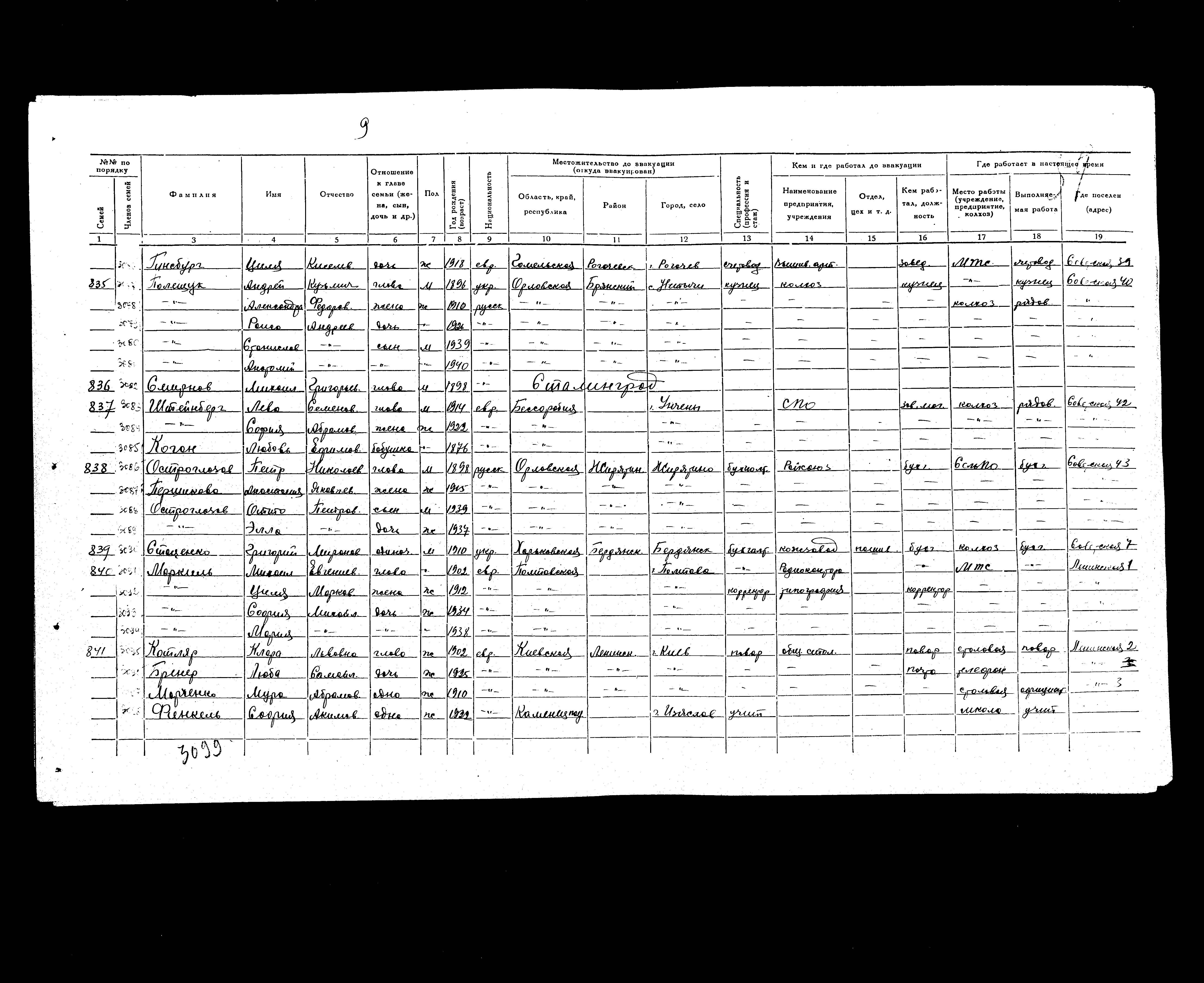 רשימת תושבים שפונו לנפת Medveditskoye, שהוכנה בשנת 1942