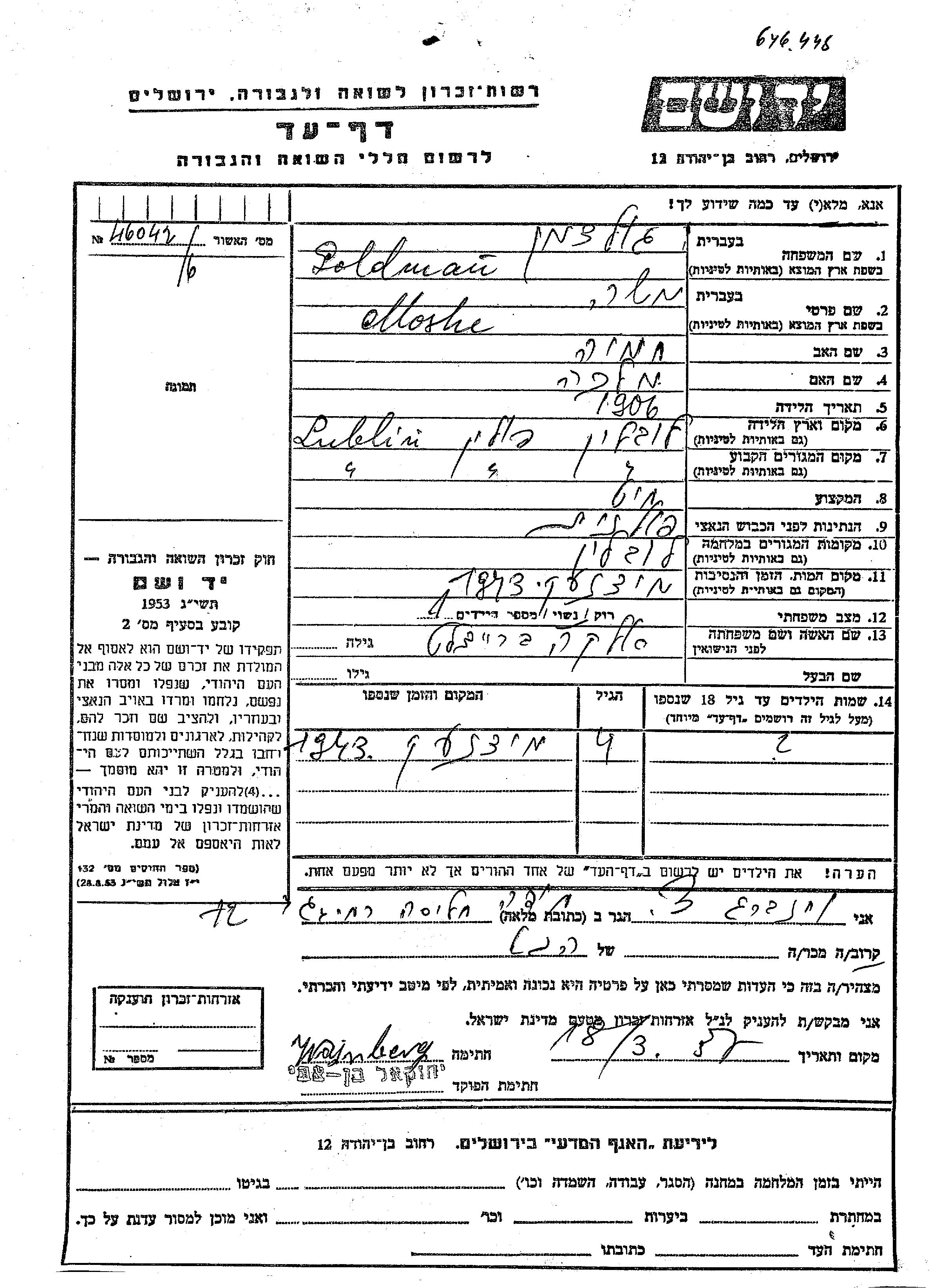 גולדמן משה 1906 Lublin, פולין דף-עד