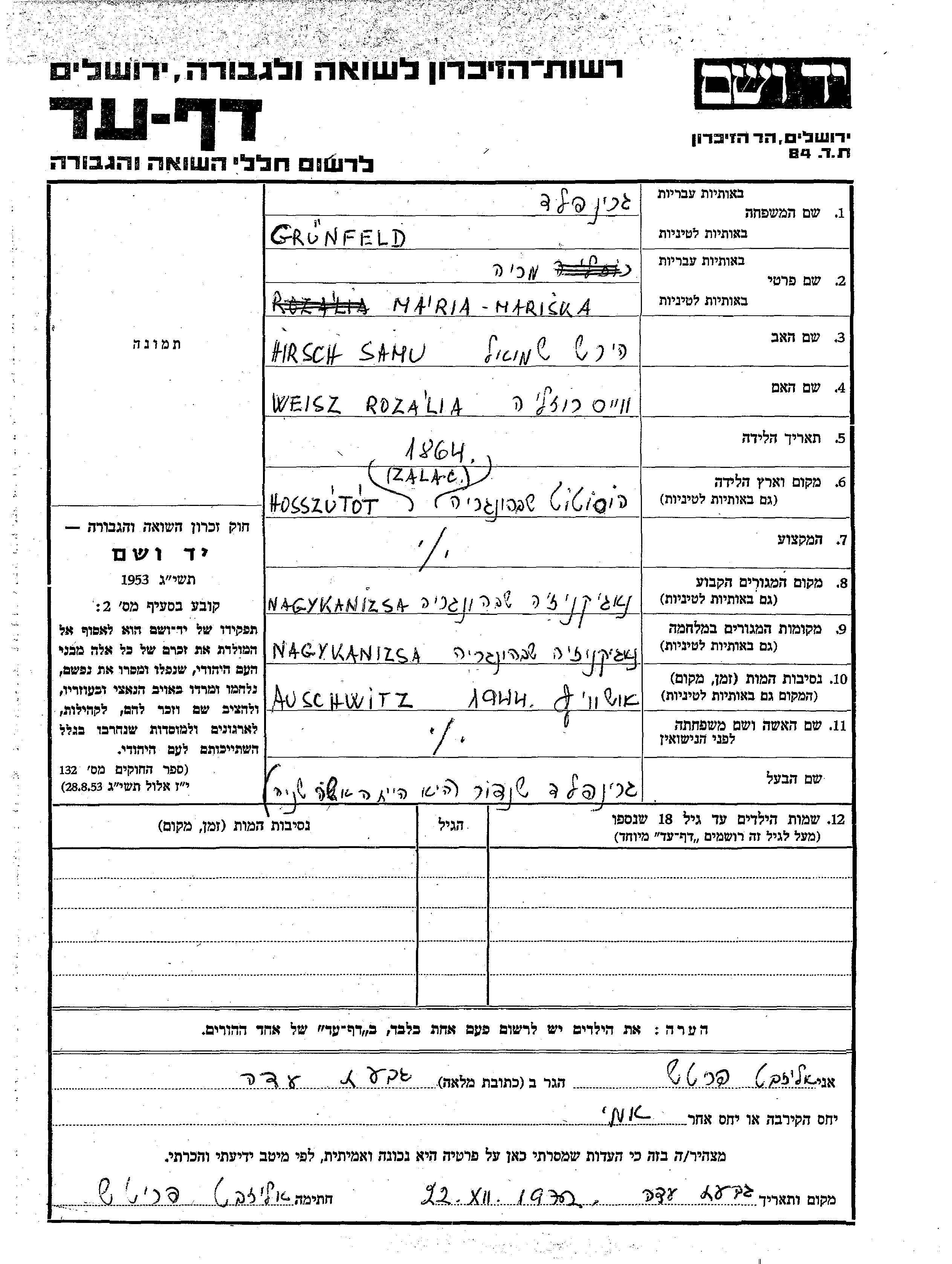עיר/כפר, גטו/מחנה או אתר רצח או מחוז/אזור או מדינה. שם מקום ניתן לחפש רק בא-ב לטיני.