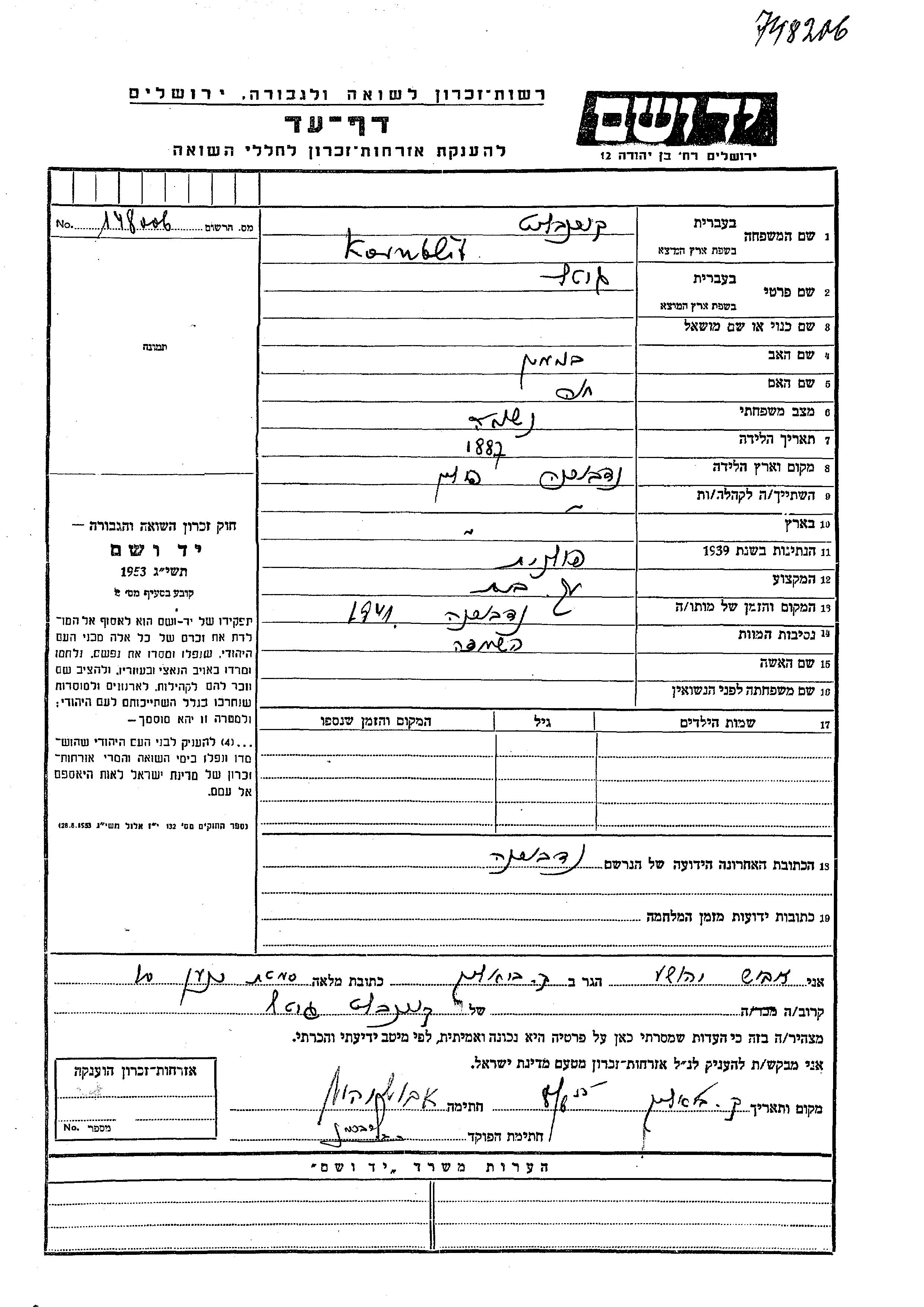 קורנבליט גיטל 1887 Nadworna, פולין דף-עד